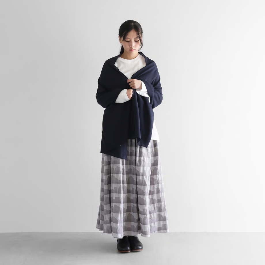 ウォッシャブルウールストール(ダークネイビー)S103