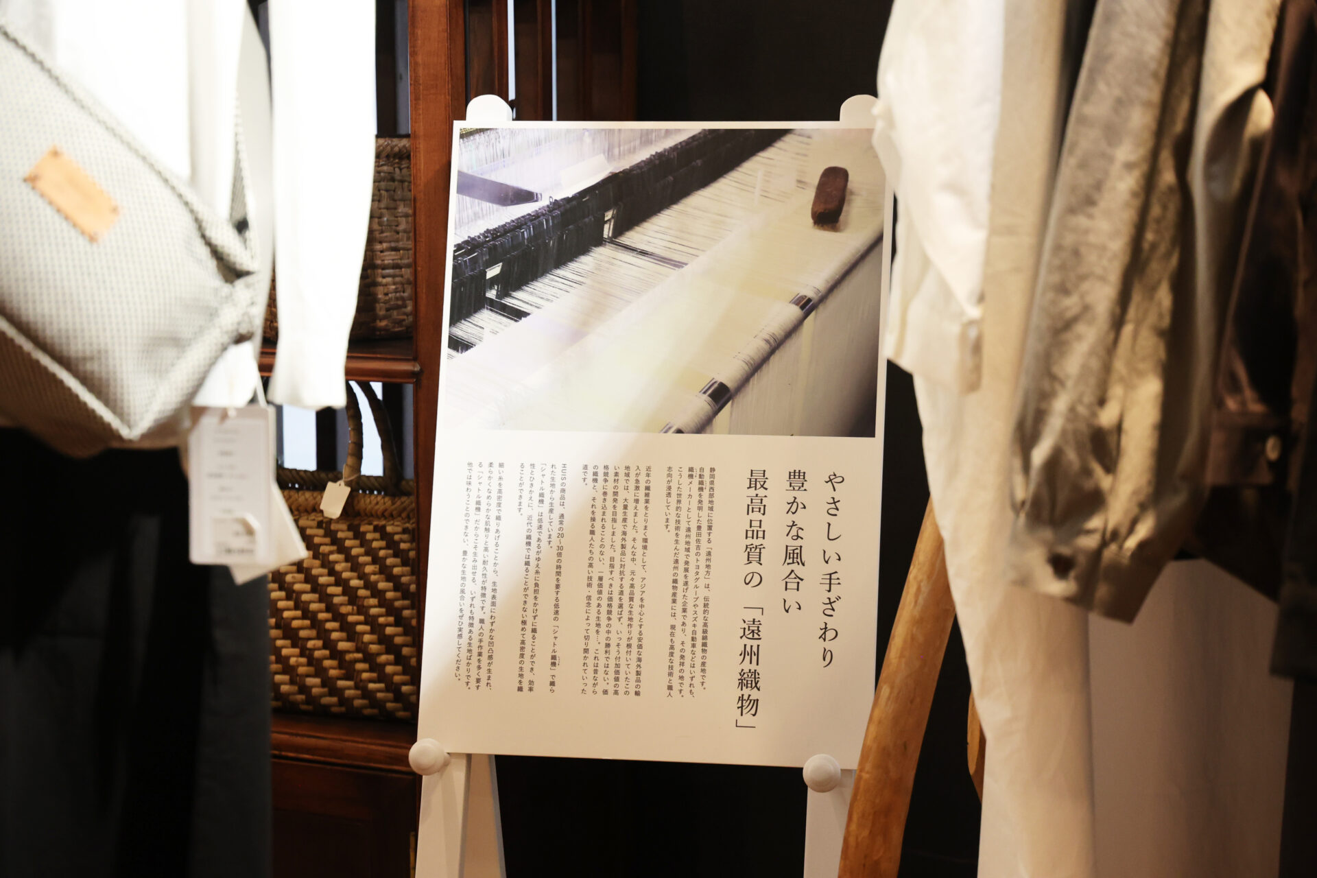 高品質な“遠州織物”を使用したシンプルな衣服。