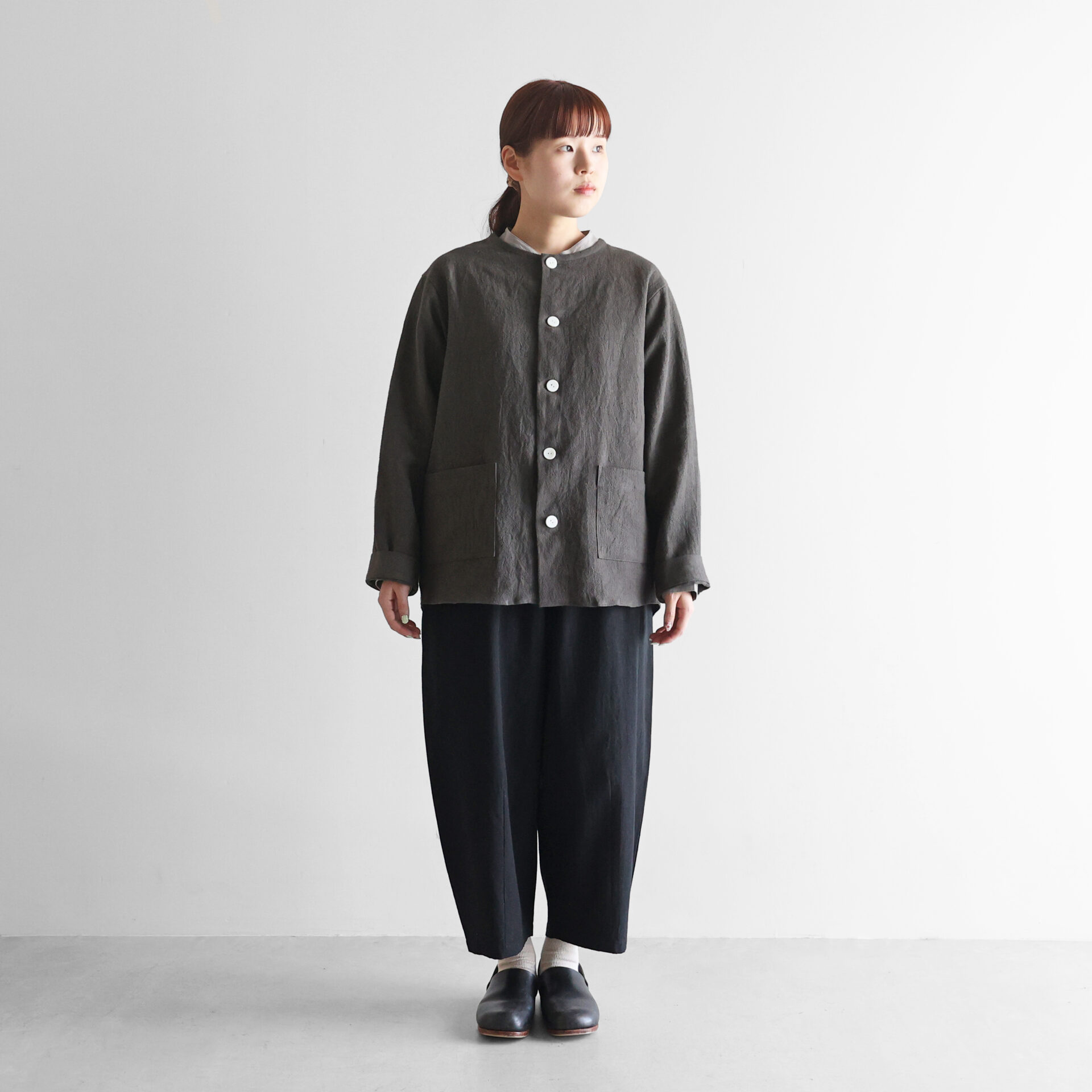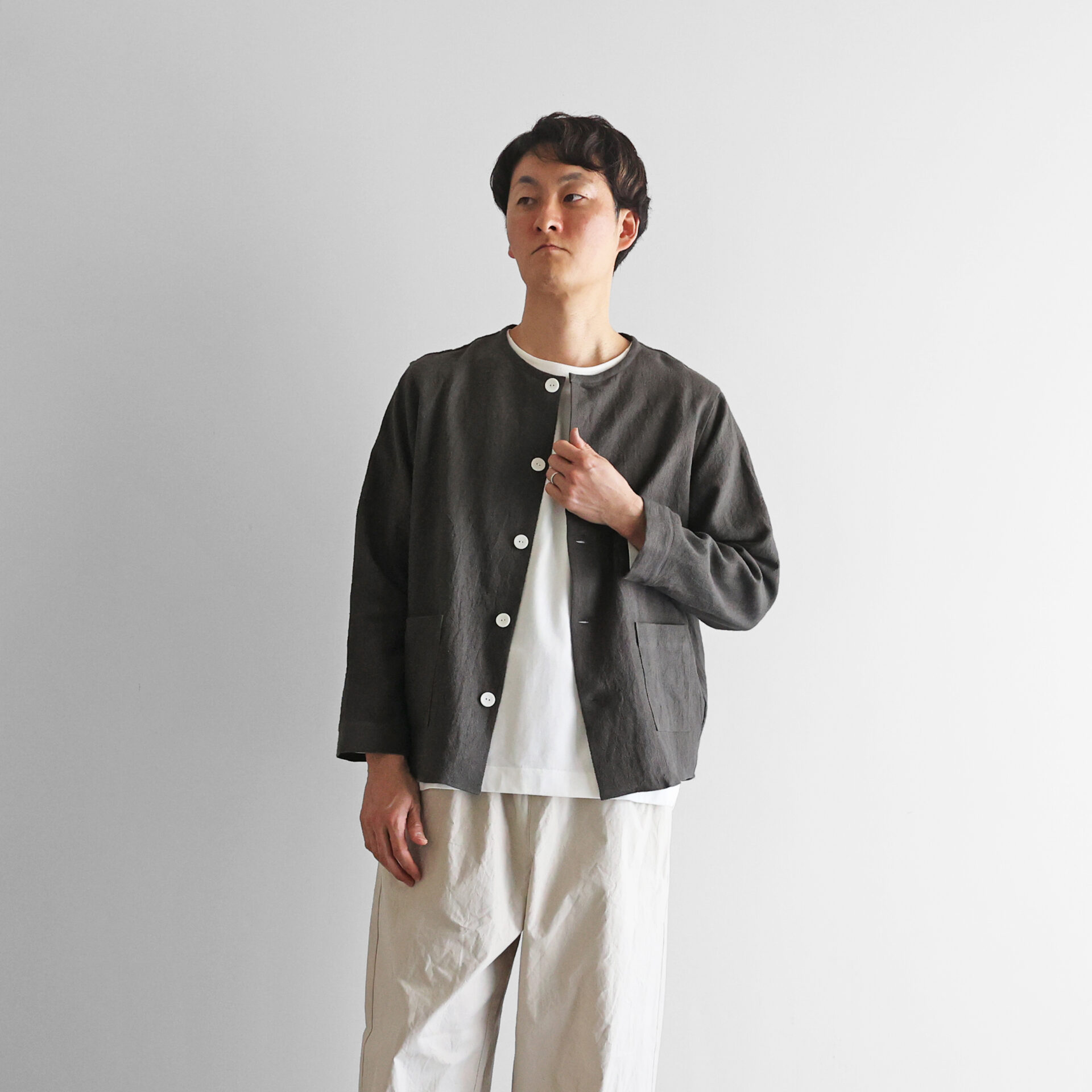 ■オールドレピア天日干しラミーリネンノーカラーシャツジャケット 010