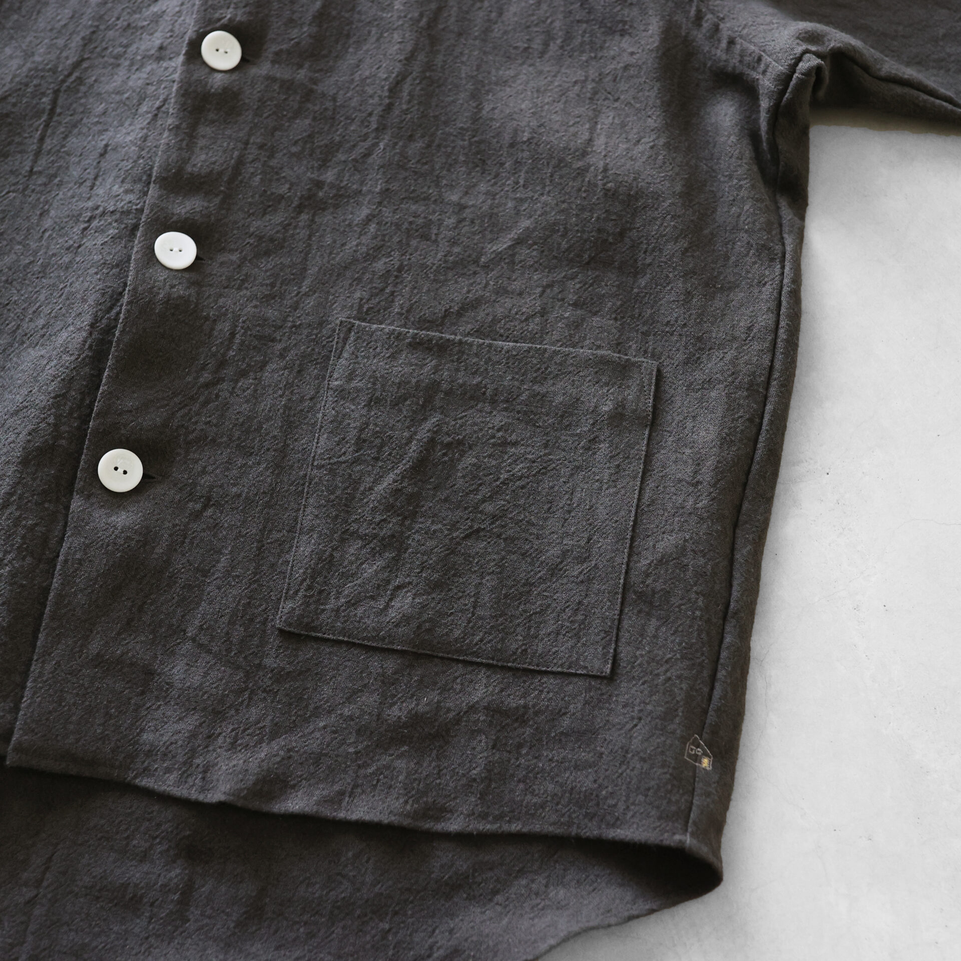 \オールドレピア天日干しラミーリネンノーカラーシャツジャケット【ユニセックス】010をリリースしました/