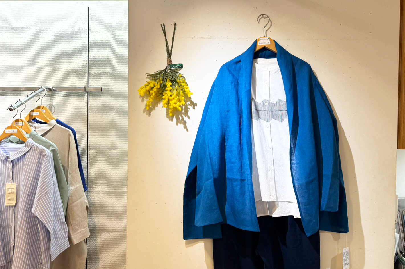 高品質な“遠州織物”を使用したシンプルな衣服。