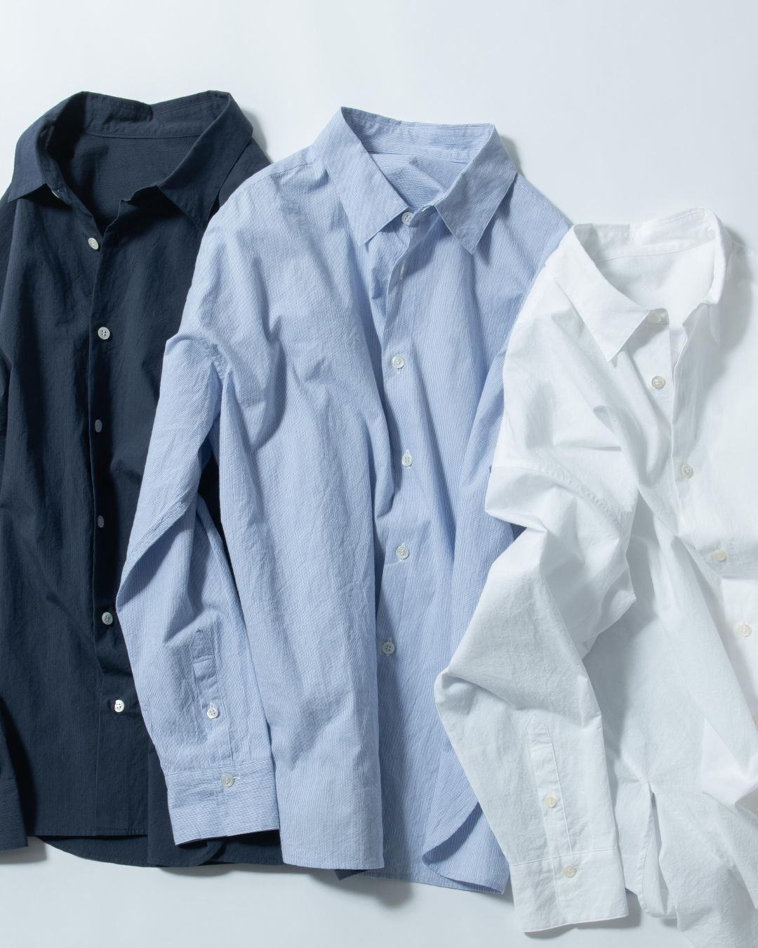 シンプルな見た目の中に、動きやすさと着心地への細やかな工夫が詰まっています。肌にまとわりつかないサラッとした着心地で、肩をぐるっと回してもつっぱらないストレスフリーな動きやすさ。気づけば手に取ってしまう“頼れるオーバーシャツ”です。