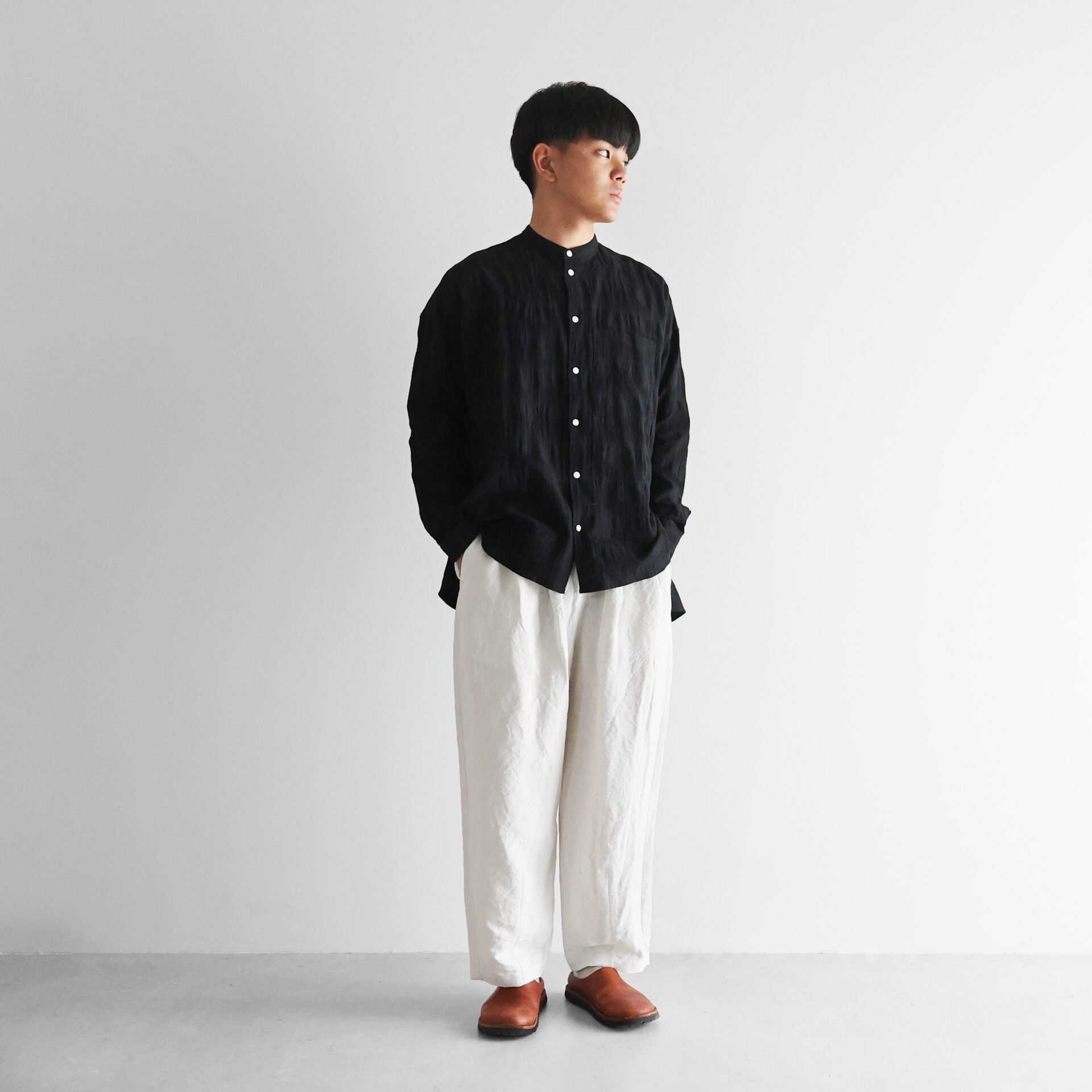 高品質な“遠州織物”を使用したシンプルな衣服。