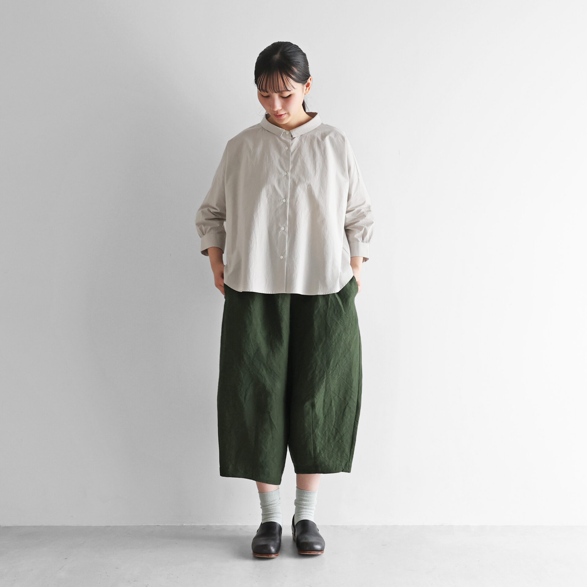 人気の定番ワイドブラウスの袖を8分丈にし、洗い物など家事仕事の際にも着用しやすいデザインです。