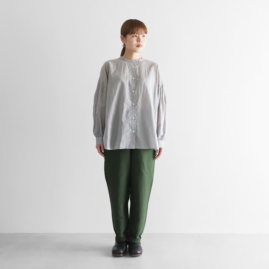 生地もパリッとしっかりしているので、オールシーズン使いたいです。手持ちの白シャツ(HUISさんのもの)にもしっくりなじみます。