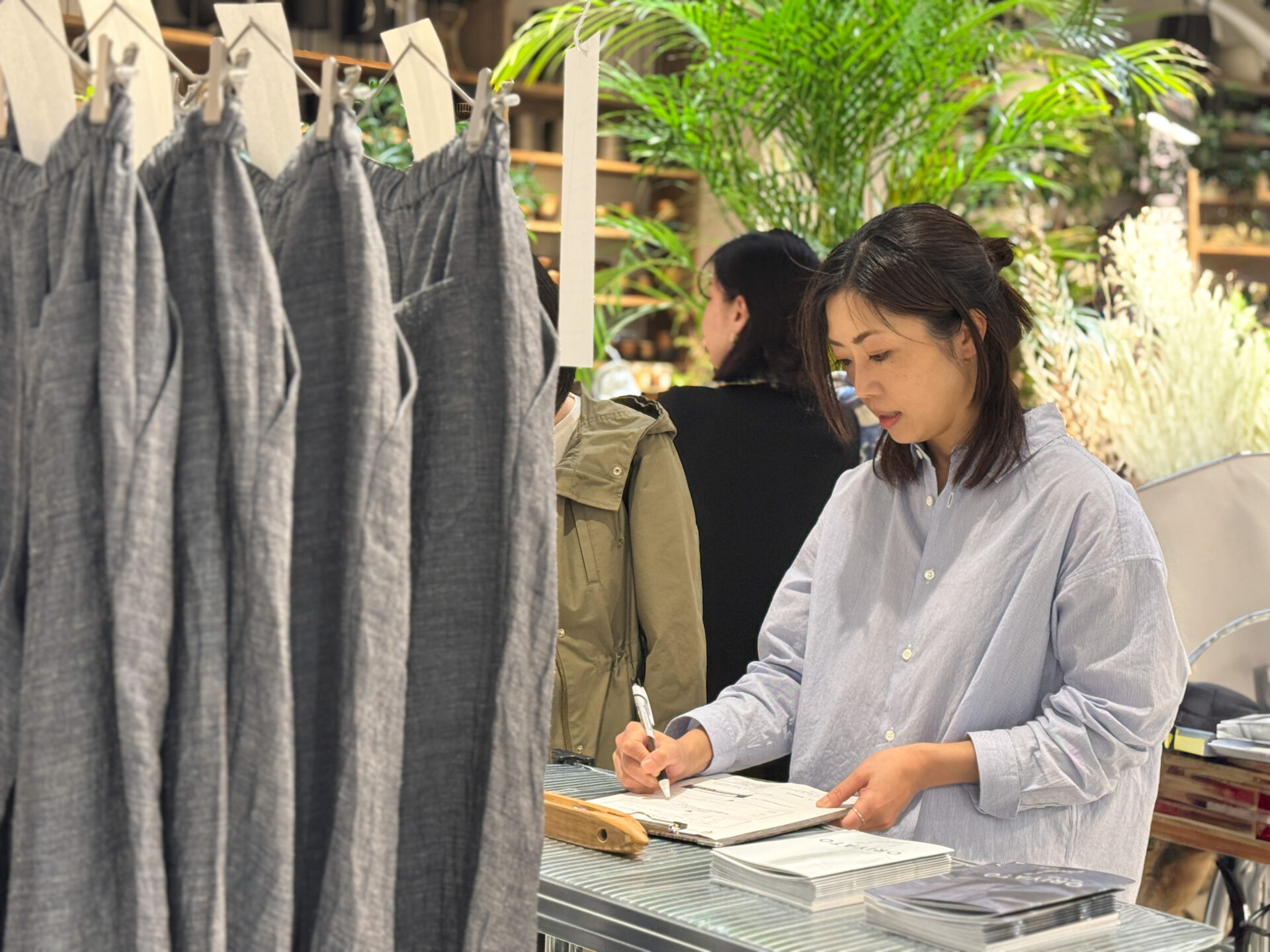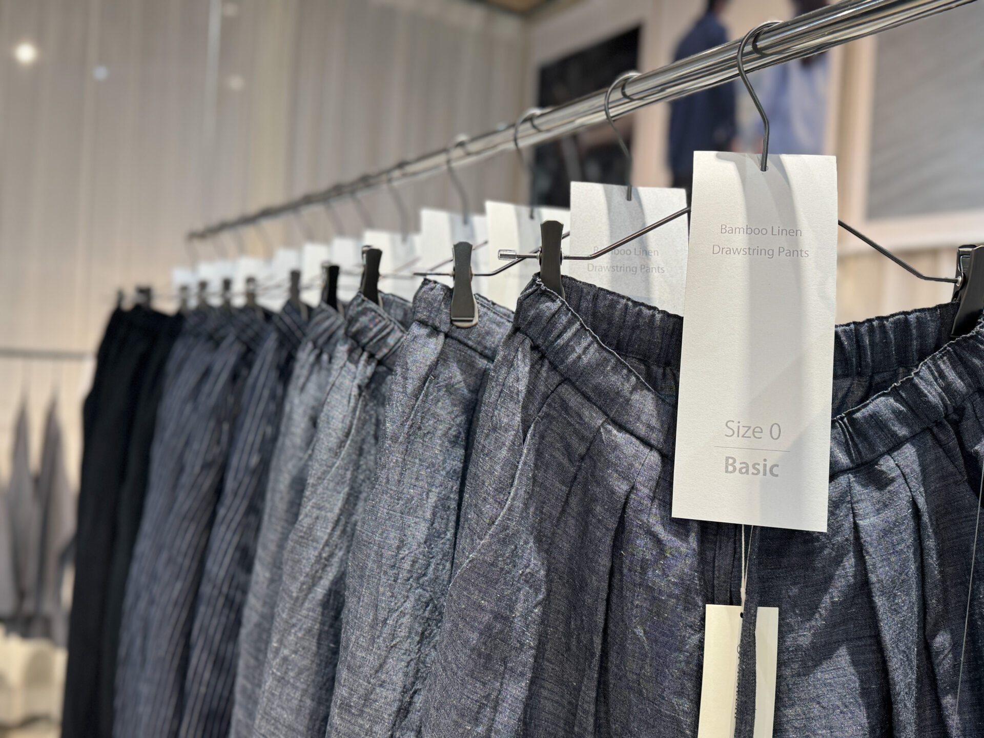「さんちギャラリー」で予約販売となる「バンブーリネン ドロストパンツ」、関東初登場の新作アイテムなど多数のアイテムが並びました!