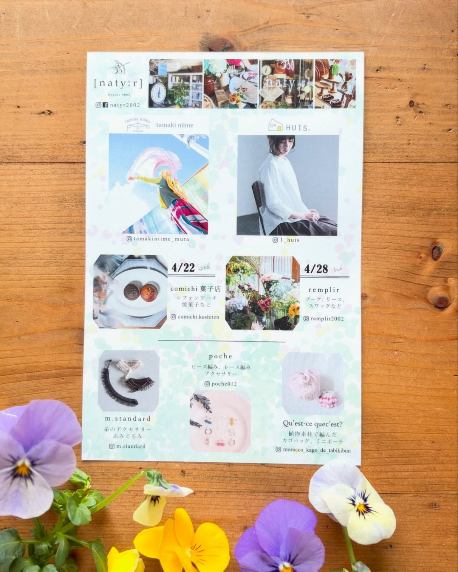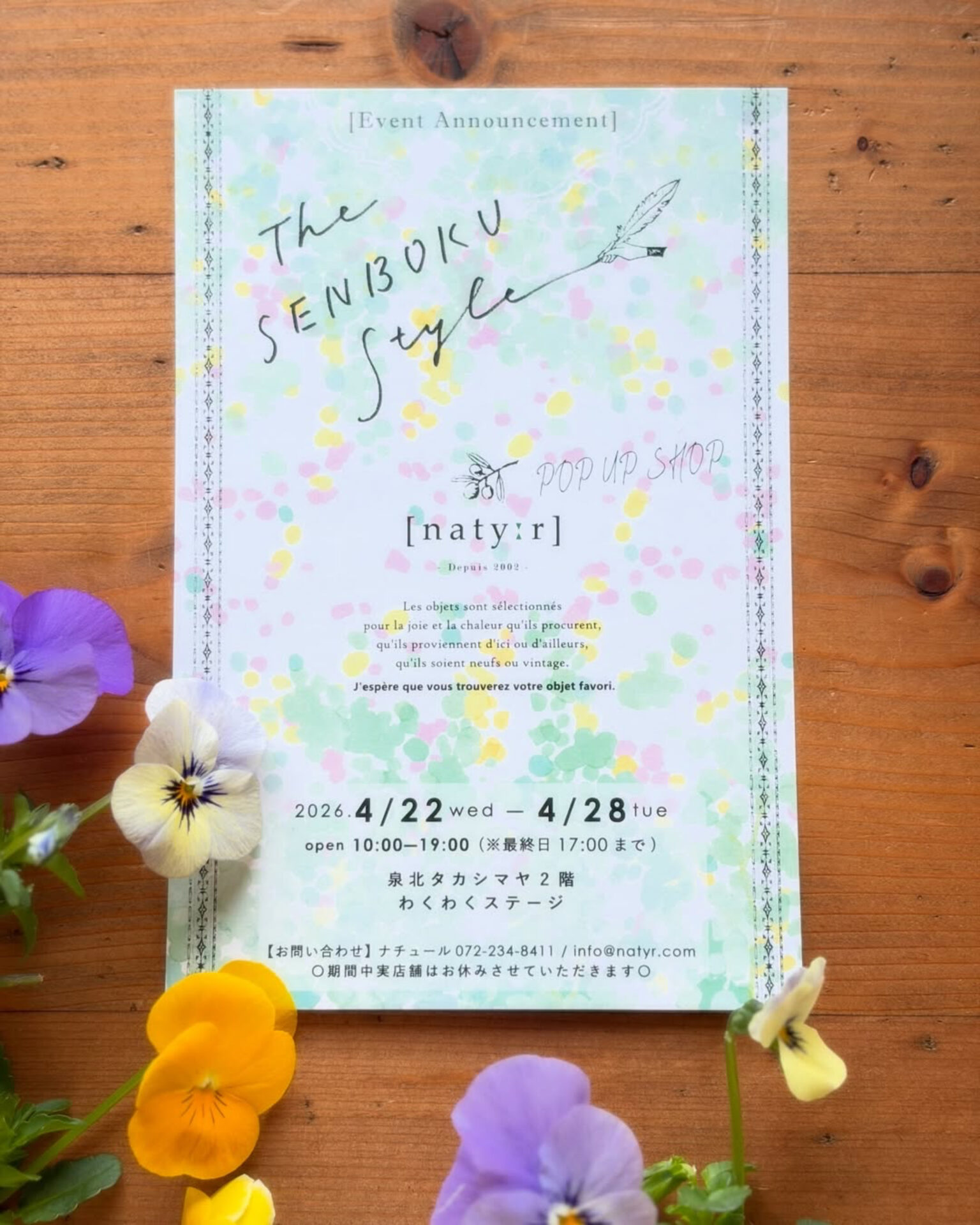 なお、泉北タカシマヤさんへのPOPUP出展に伴い、4/21(火)〜 4/29(水・祝)の期間、ナチュールさんはお休みとなります。ご注意ください。