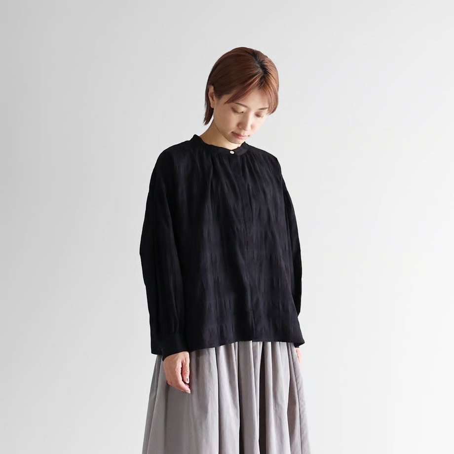 ■U106柄二重織シャトルジャガードバルーンスリーブワイドブラウス