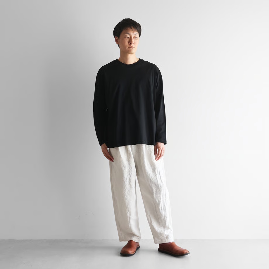 506を1本506Lを3本気に入って愛用しています。504は初めて購入しましたが、156センチの私でも裾を折らずに履けます。この形も気に入りました。言わずもがなバンブーリネンの履き心地も素晴らしく、ヘビロテ間違いない感じです。