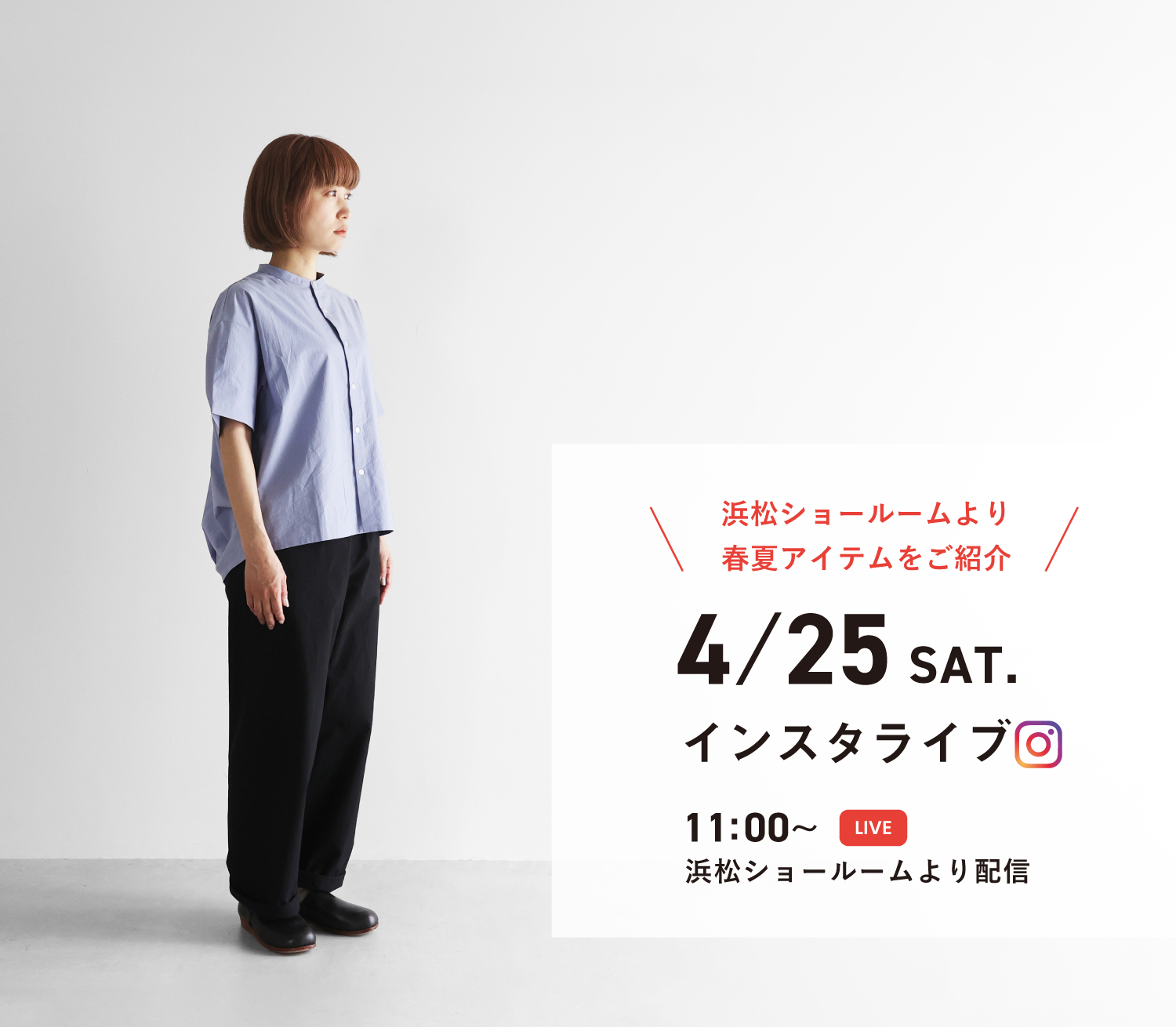 今週末の4/25(土)11:00からは、代表松下とデザイナー松下あゆみによる春夏アイテム解説インスタライブをお送りします!