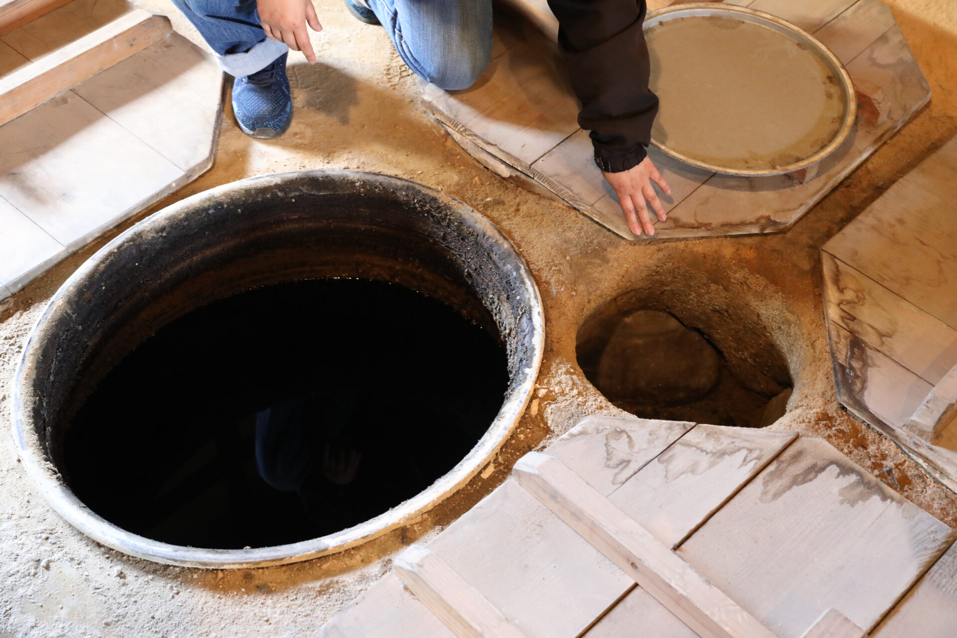 ※ロープ染色は撮影のできない工程のため掲載していません。家屋の窯は坂本デニムさんに残る貴重な藍染設備の様子です。