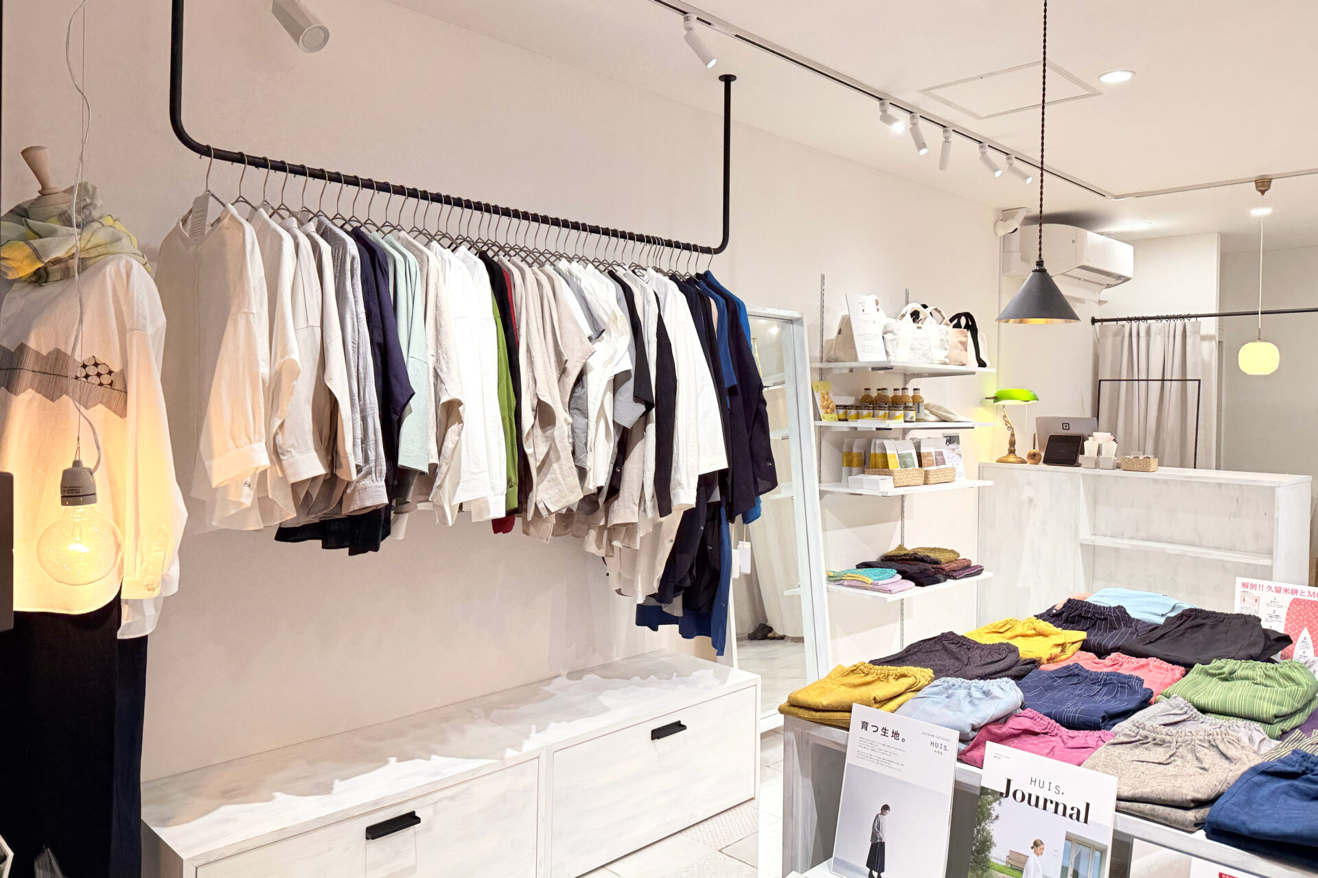 「服を纏う、心がうたう。」をコンセプトに、国内の様々な産地からセレクトされた”育てる服と雑貨”が並びます。
