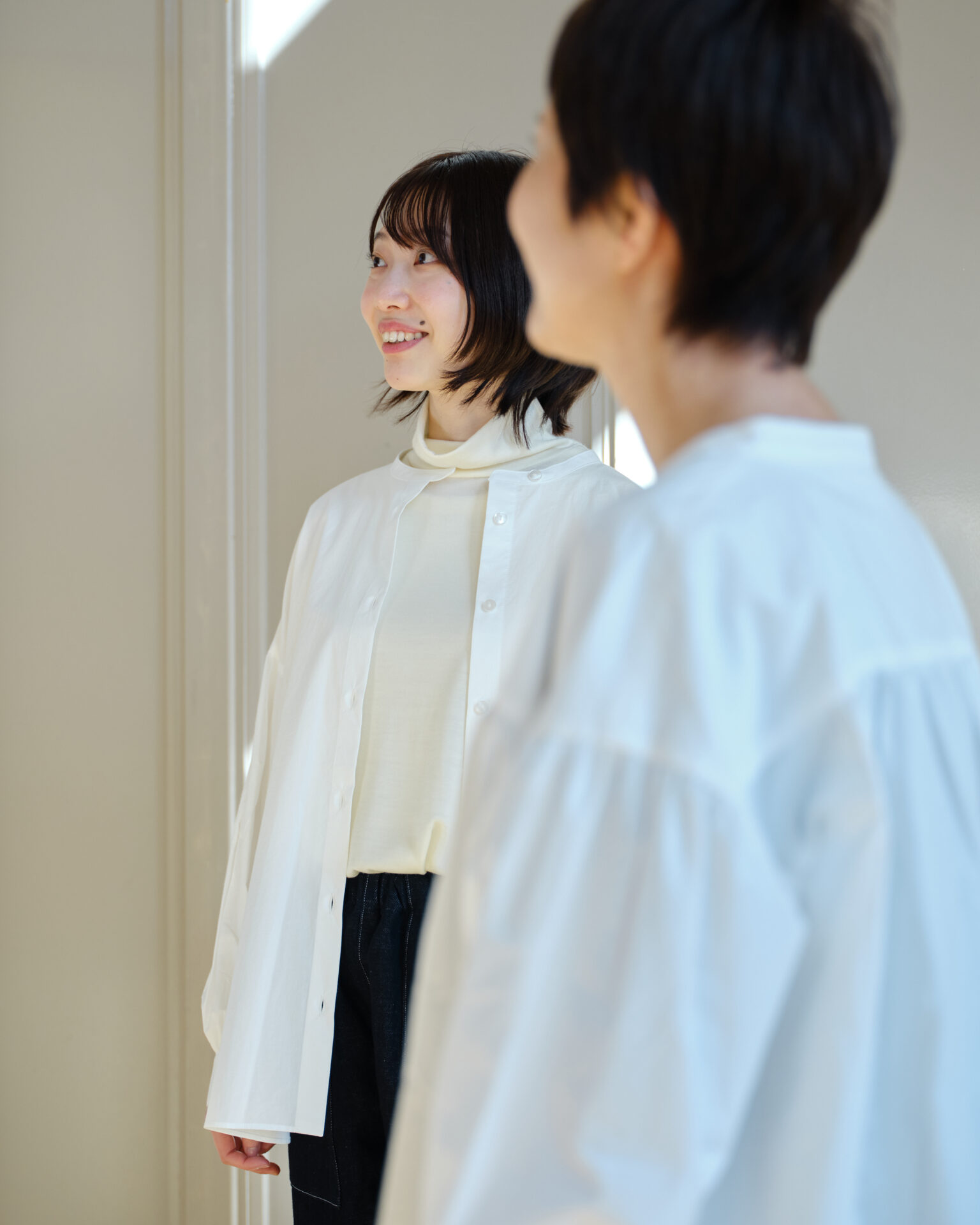 tops/ CS203[HUIS in house]メリノオプティモウォッシャブルウール天竺長袖タートルネックカットソー、U114 オーガニックコットンバルーンスリーブブラウス