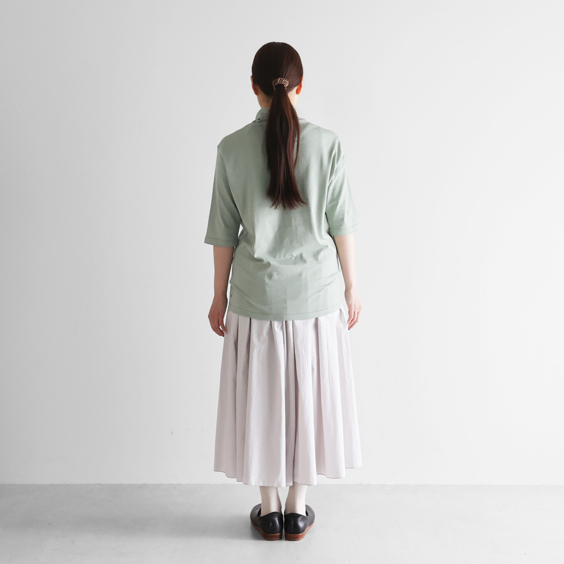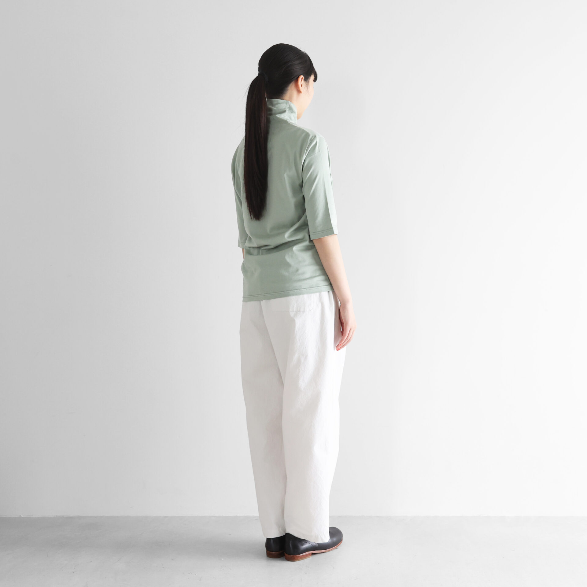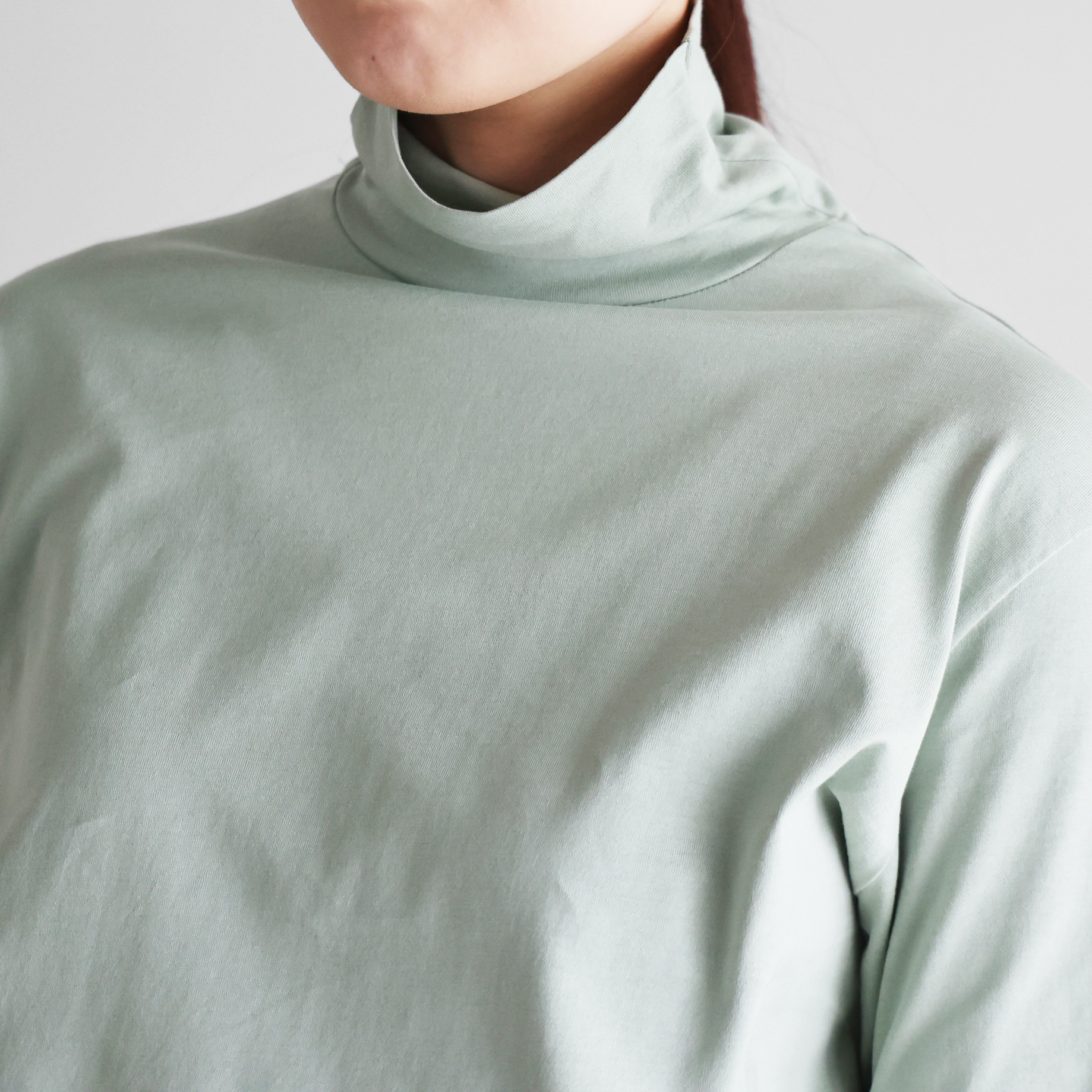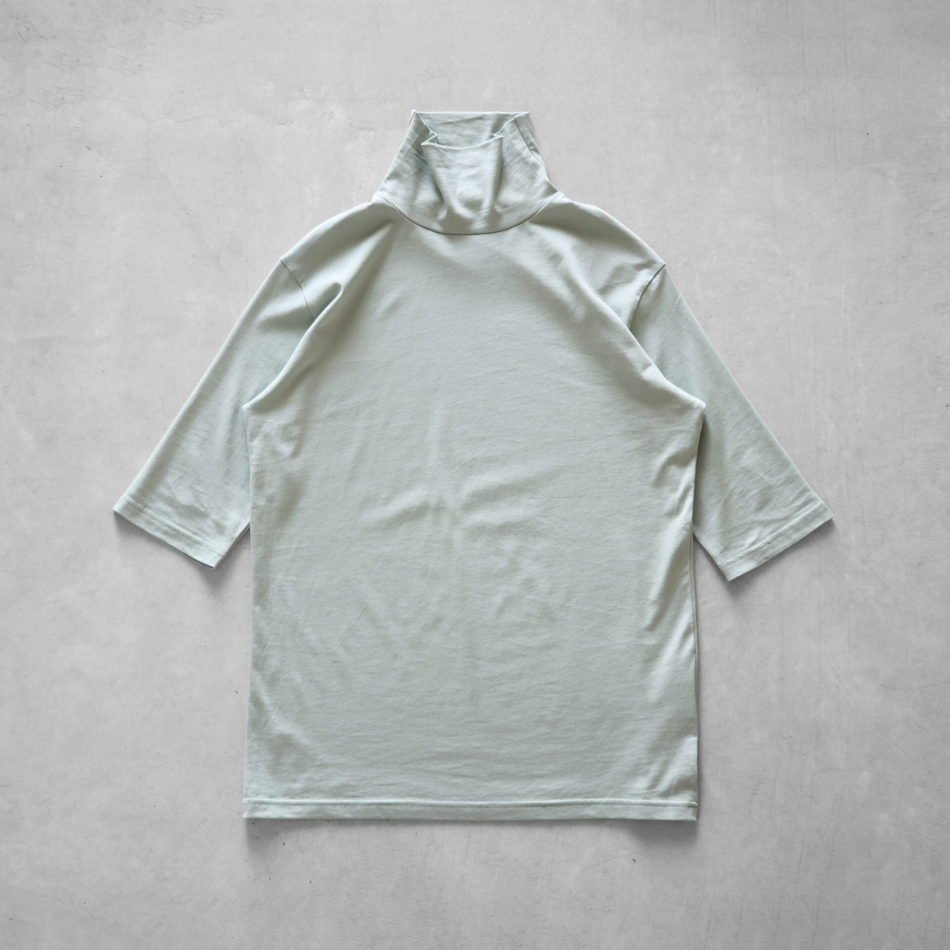 春夏用の5分袖となった定番のタートルカットソー。一般的なタートルネックと異なり、ネックの後ろの部分に切り替えがないシームレスデザインとなっています。後ろ見頃からひとつづきに立ち上がることにより、襟が立ちやすく、首にそってよりスッキリと見えるオリジナルのシルエットとなっています。