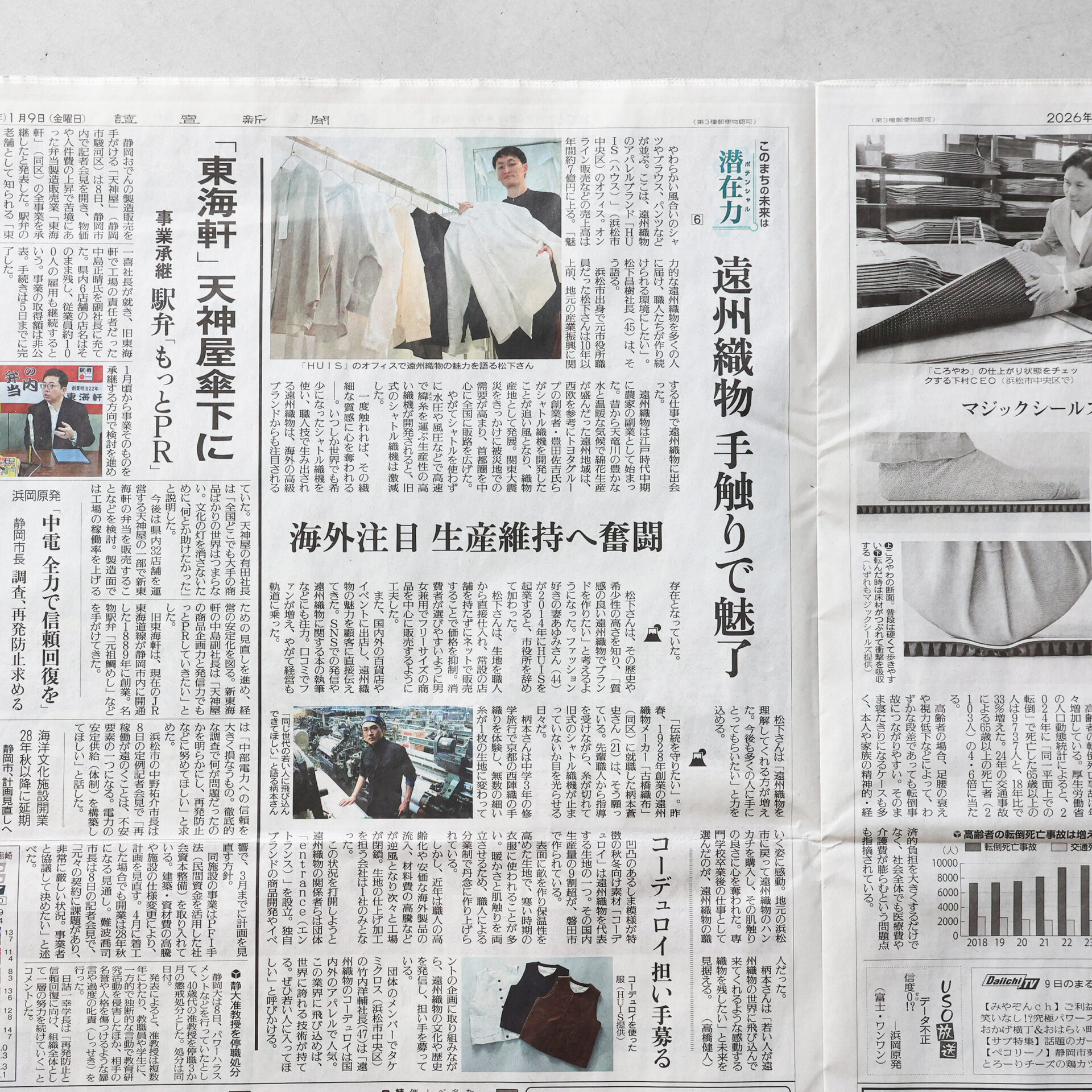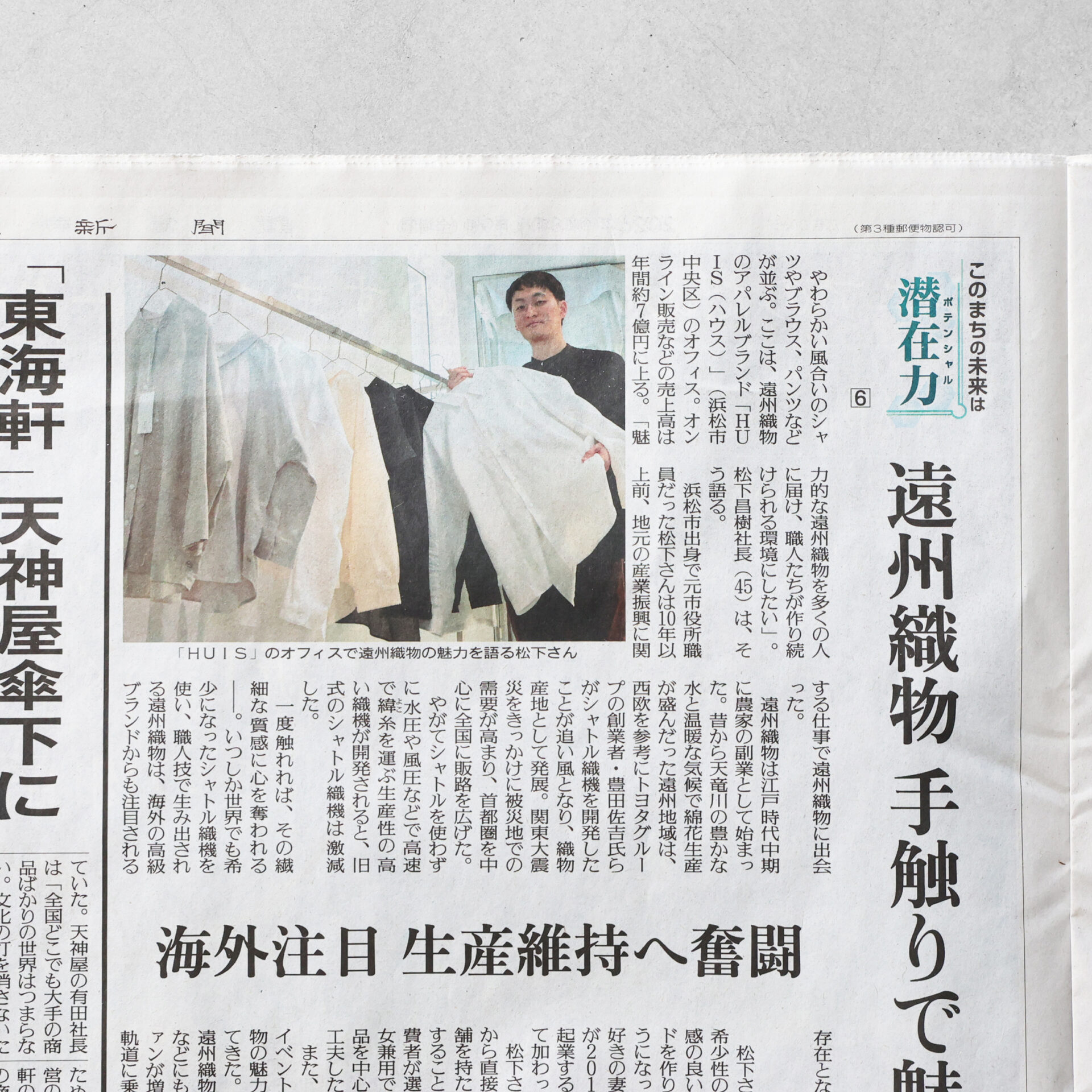 1/9付の読売新聞にて、HUISを立ち上げた背景や、産地・遠州で受け継がれてきた技術、そして今もなお生産を続ける現場の声を丁寧に取り上げていただきました。