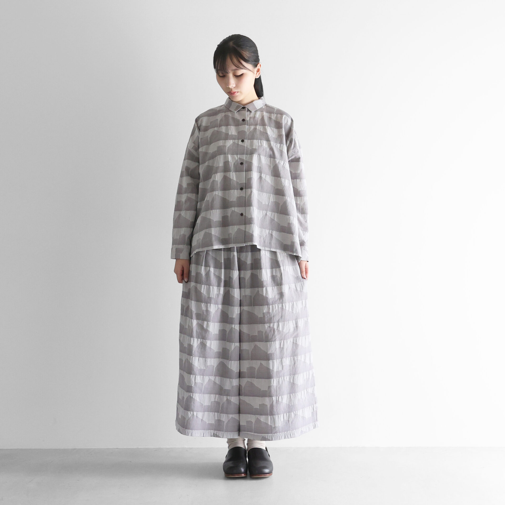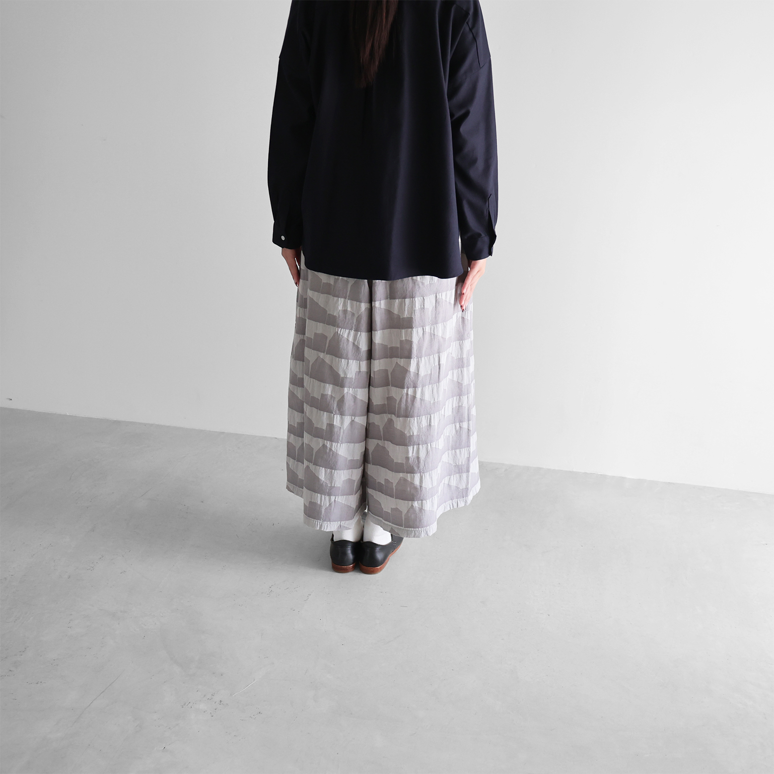 ■先染め朱子織シャトルジャガードスカートパンツ 505