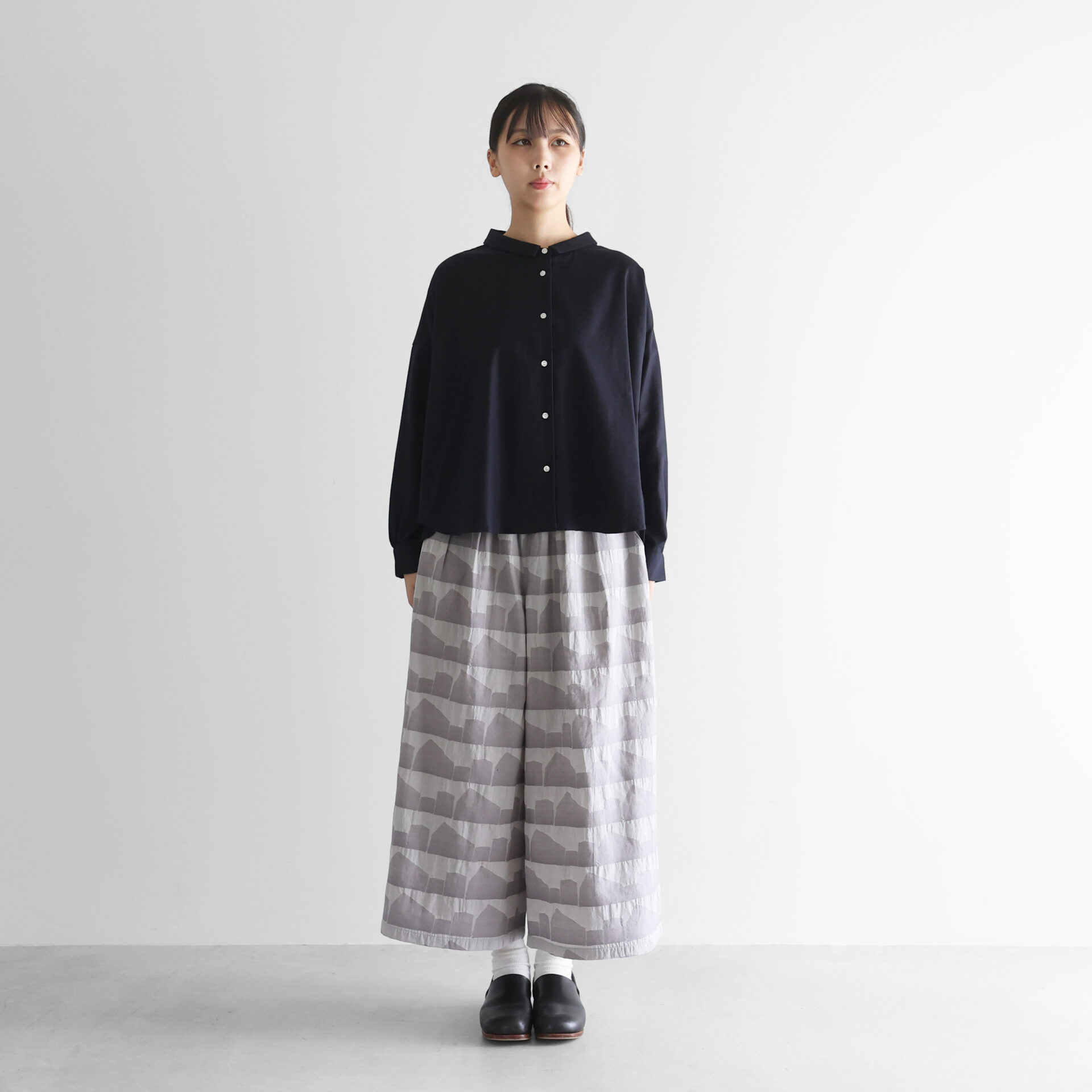 スカートのようなシルエットだけど、パンツなので動きやすく楽ちん。落ち感のある生地をたっぷりと贅沢に使った、ゆったりスカートパンツです。