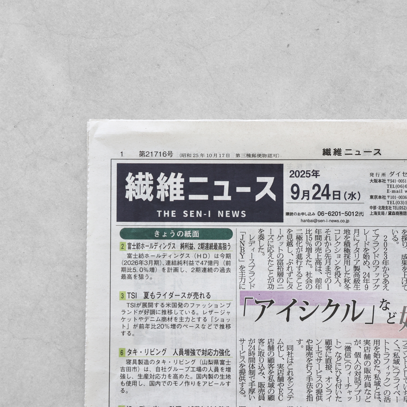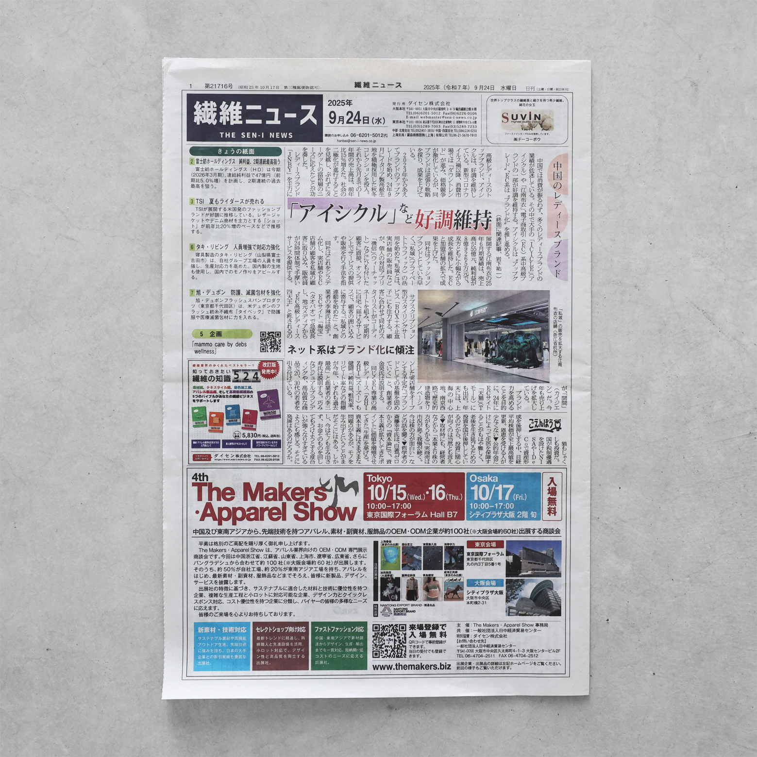 \9/24付 繊維ニュースにて「遠州のトビラ」について紹介されました/