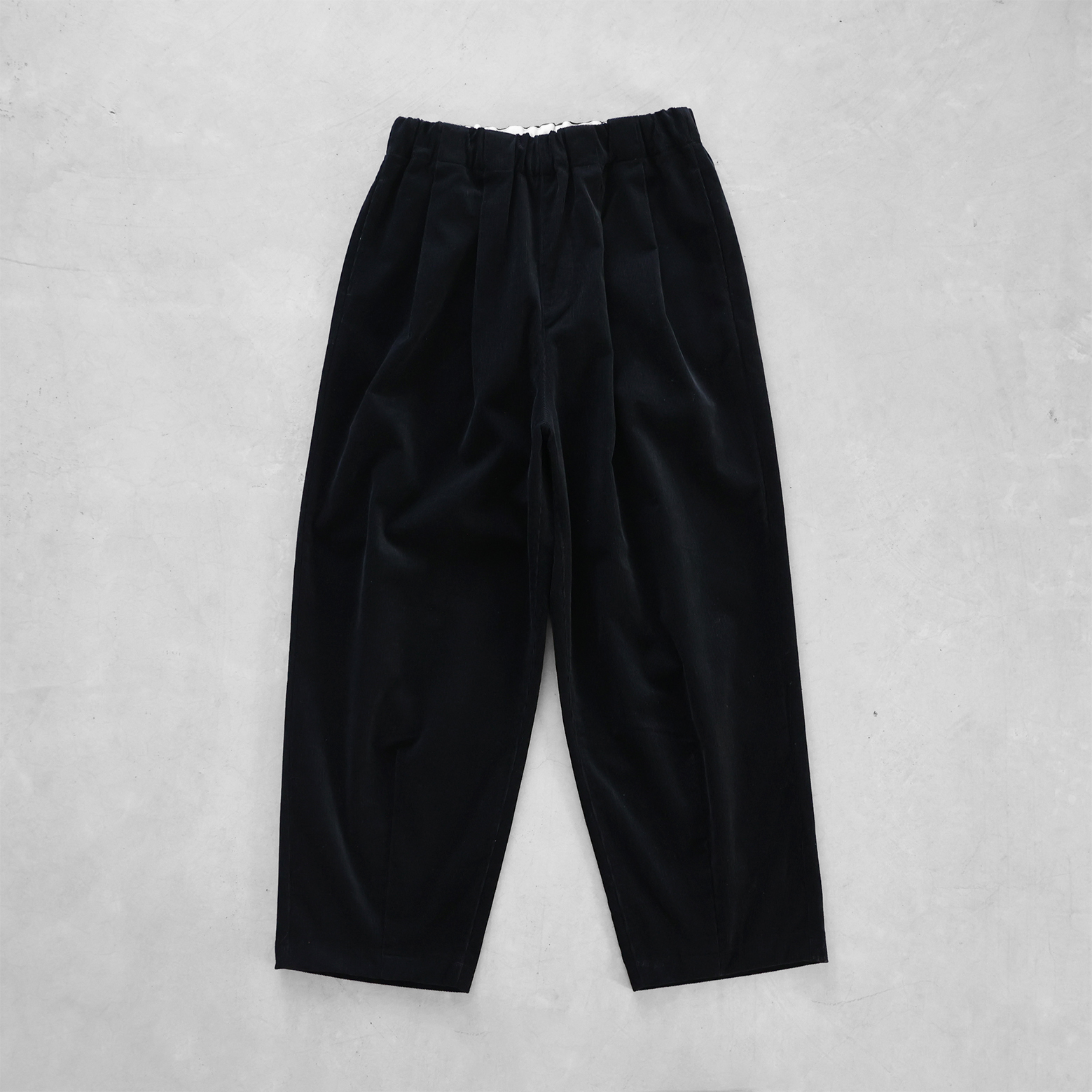 旧式の「シャトル織機」を使って織られた、世界的にも極めて希少なコーデュロイ素材を使ったワイドパンツです。