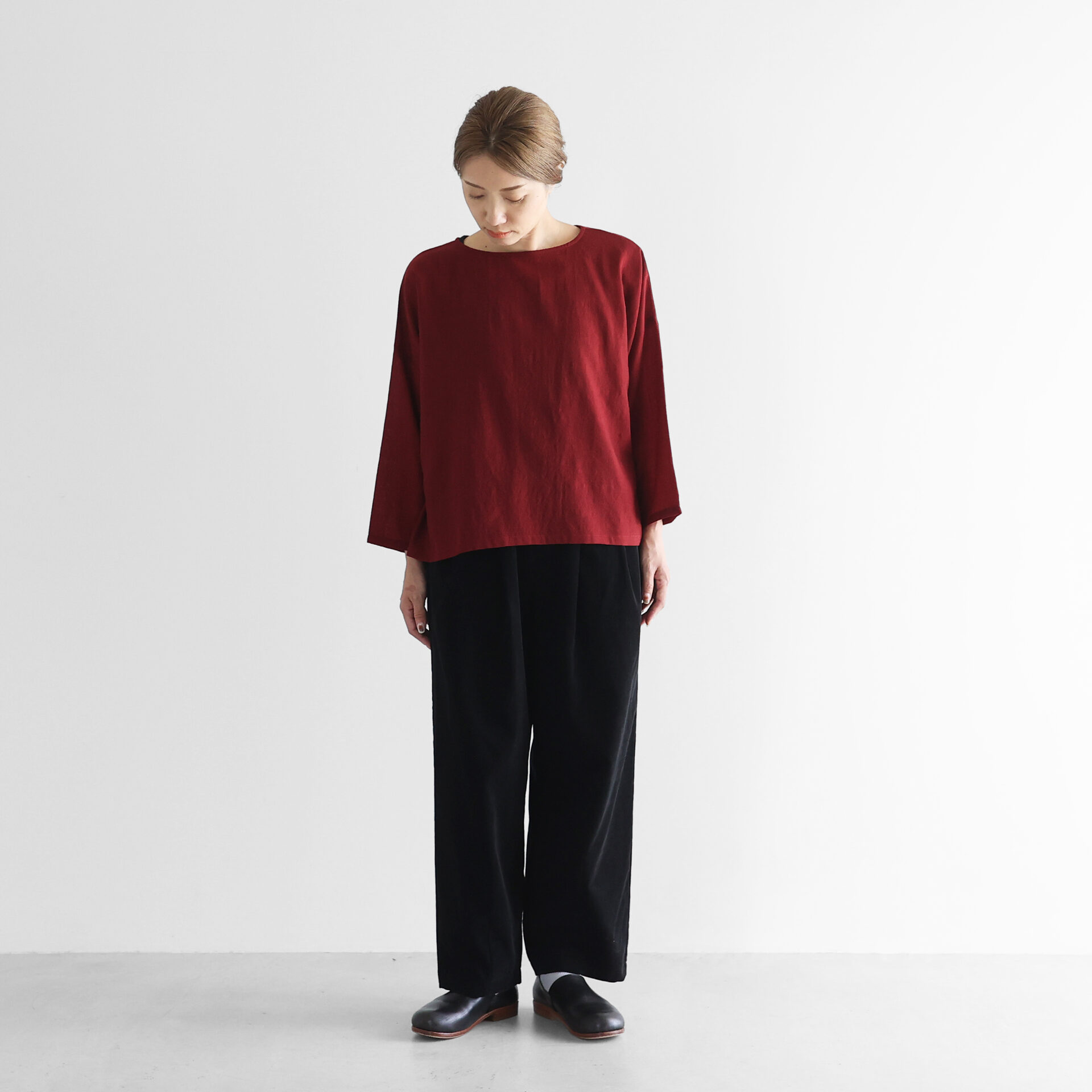 贅沢に生地を使用したゆったりシルエットのワイドパンツで、履き心地は抜群です。ウエストは紐で調整ができ、ブラウスやカットソー・ニットなど、トップスを選ばないコーディネイトで重宝していただけます。