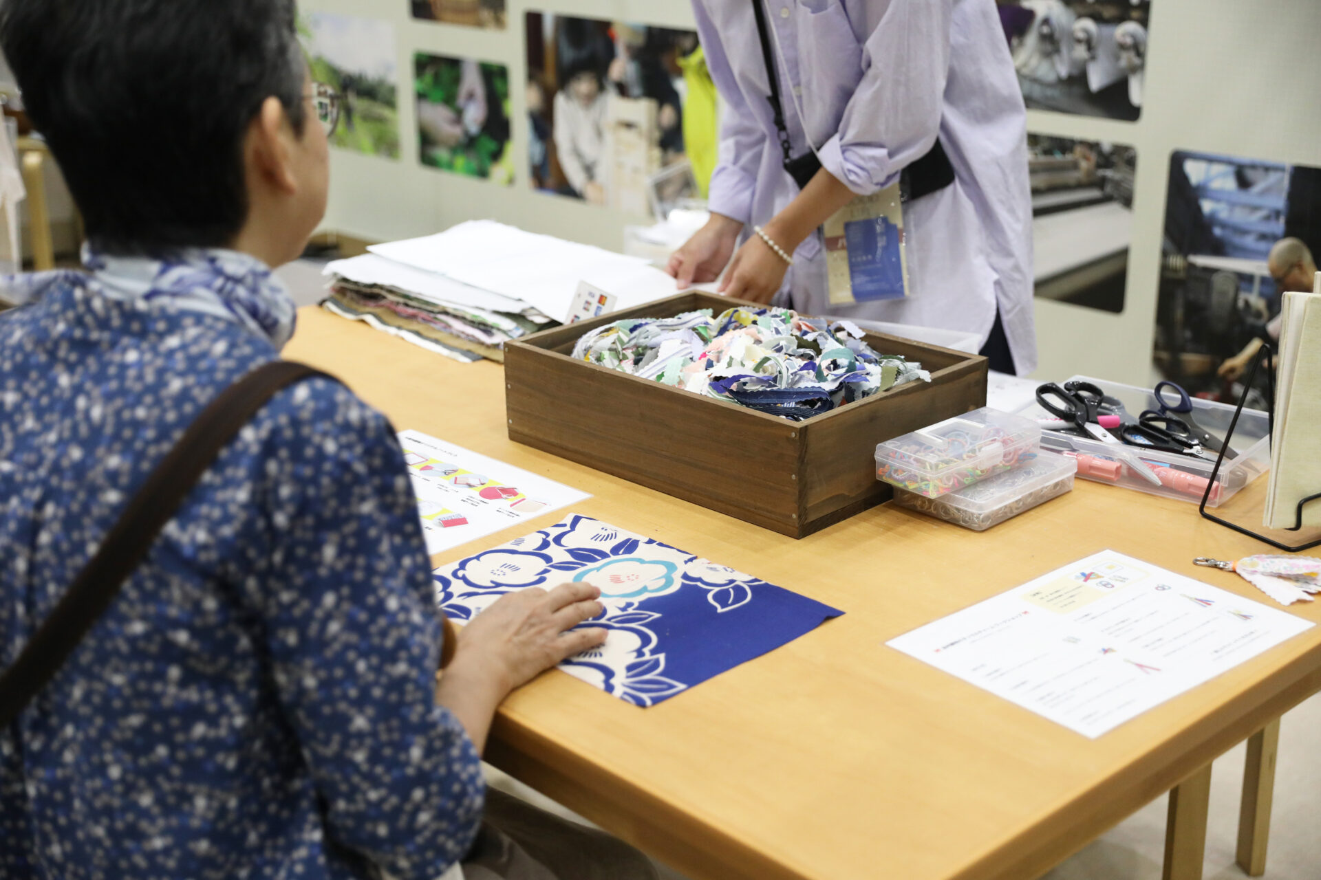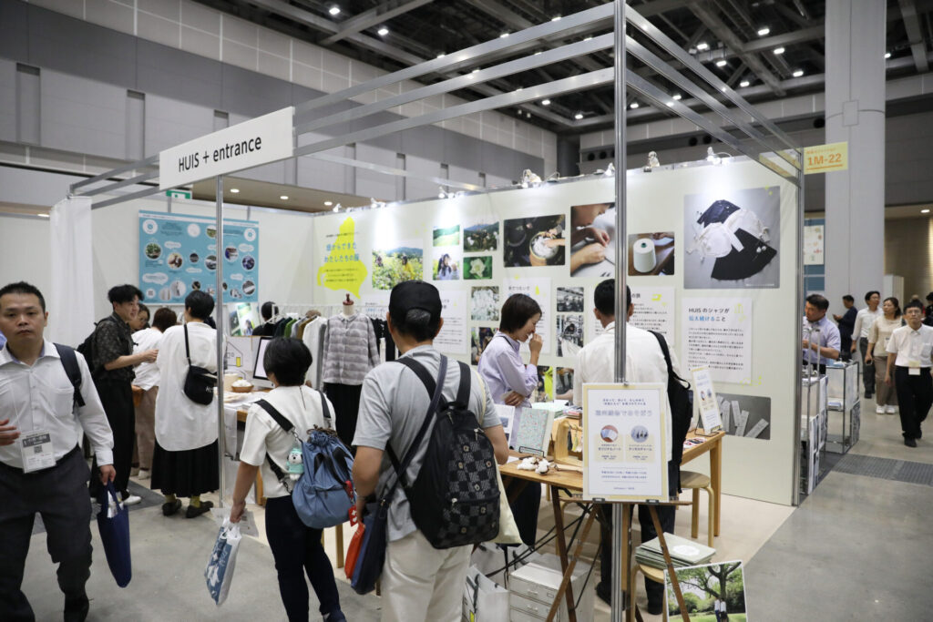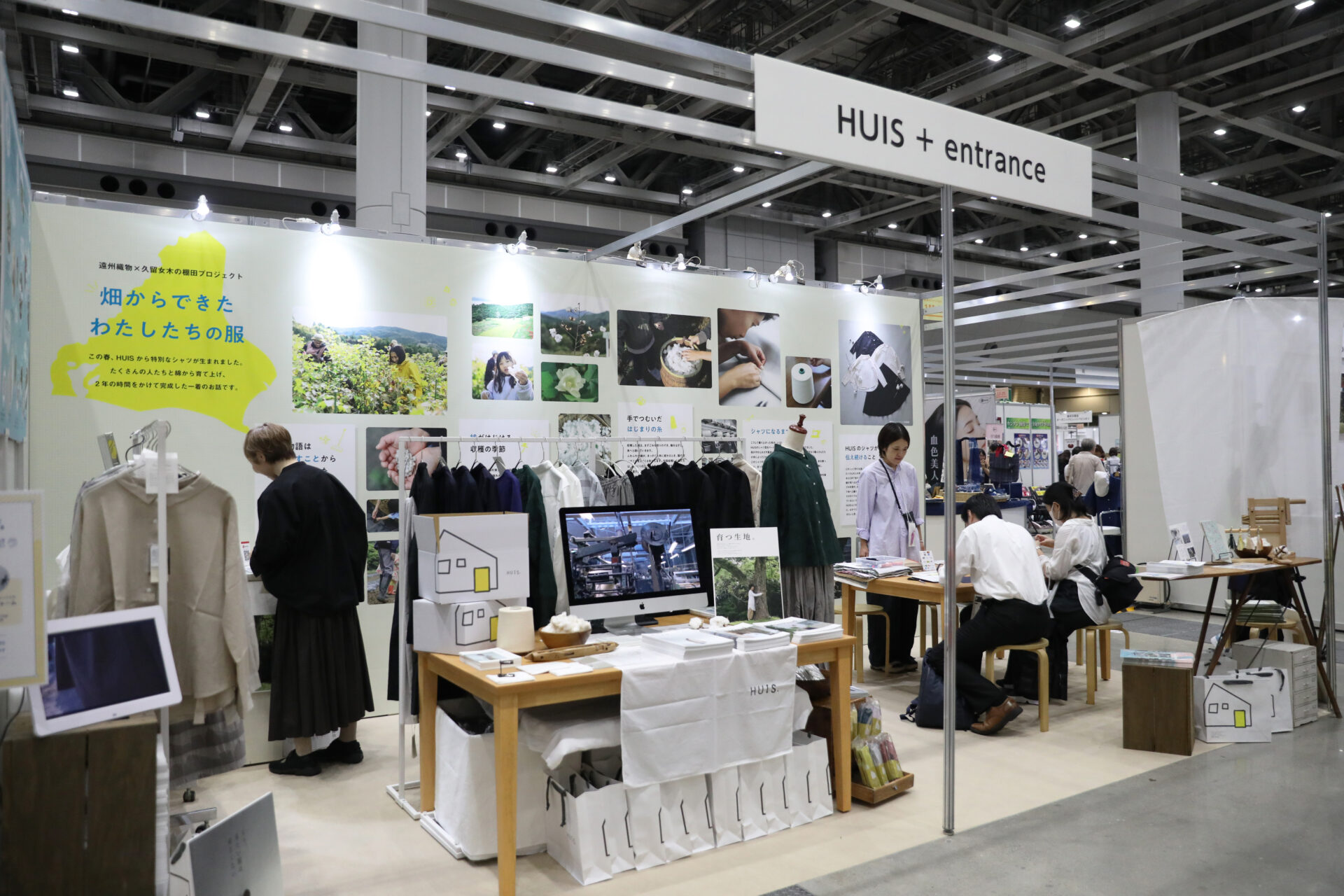 HUIS+entranceブースでは、遠州織物でつくるノートとタッセルのワークショップ、「畑からできたわたしたちの服 “遠州織物×久留女木の棚田プロジェクト”」の展示販売を行っています。