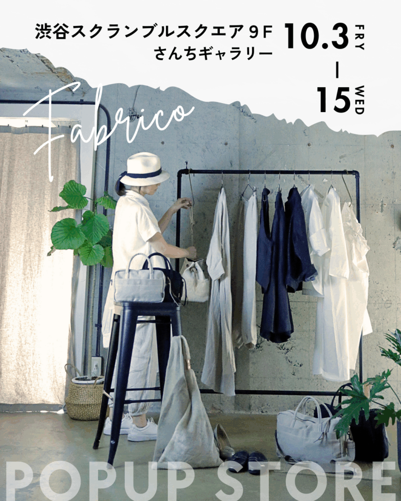 渋谷スクランブルスクエア9F・HUIS渋谷ショールーム併設「さんちギャラリー」にて、素材にこだわる3つのブランドによる特別な合同POPUPを開催いたします。