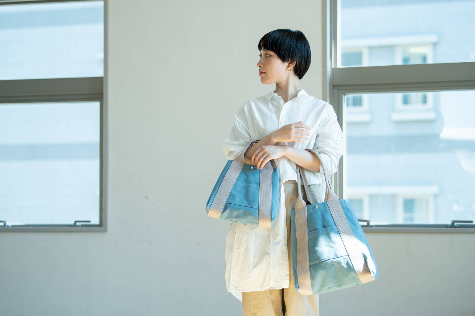 高品質な“遠州織物”を使用したシンプルな衣服。
