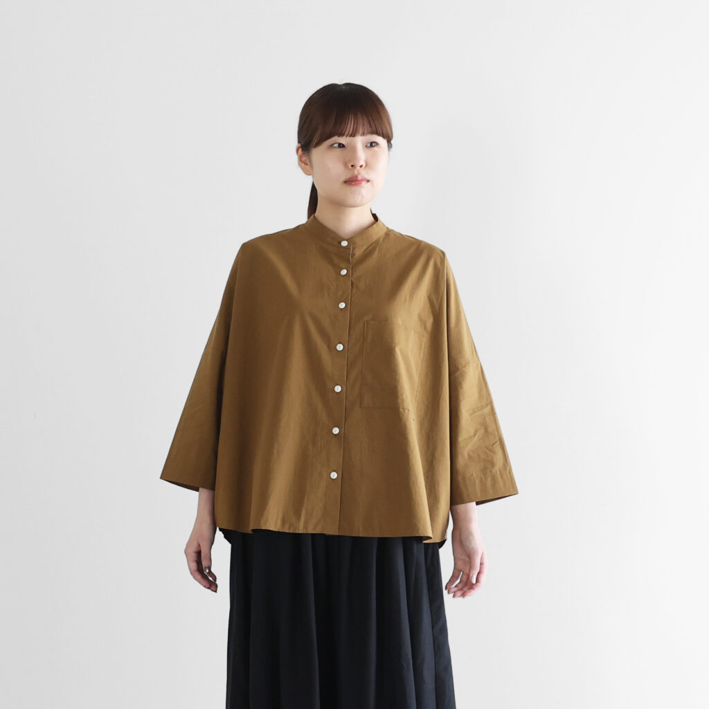■8分袖オーガニックコットンバンドカラーブラウス U112
