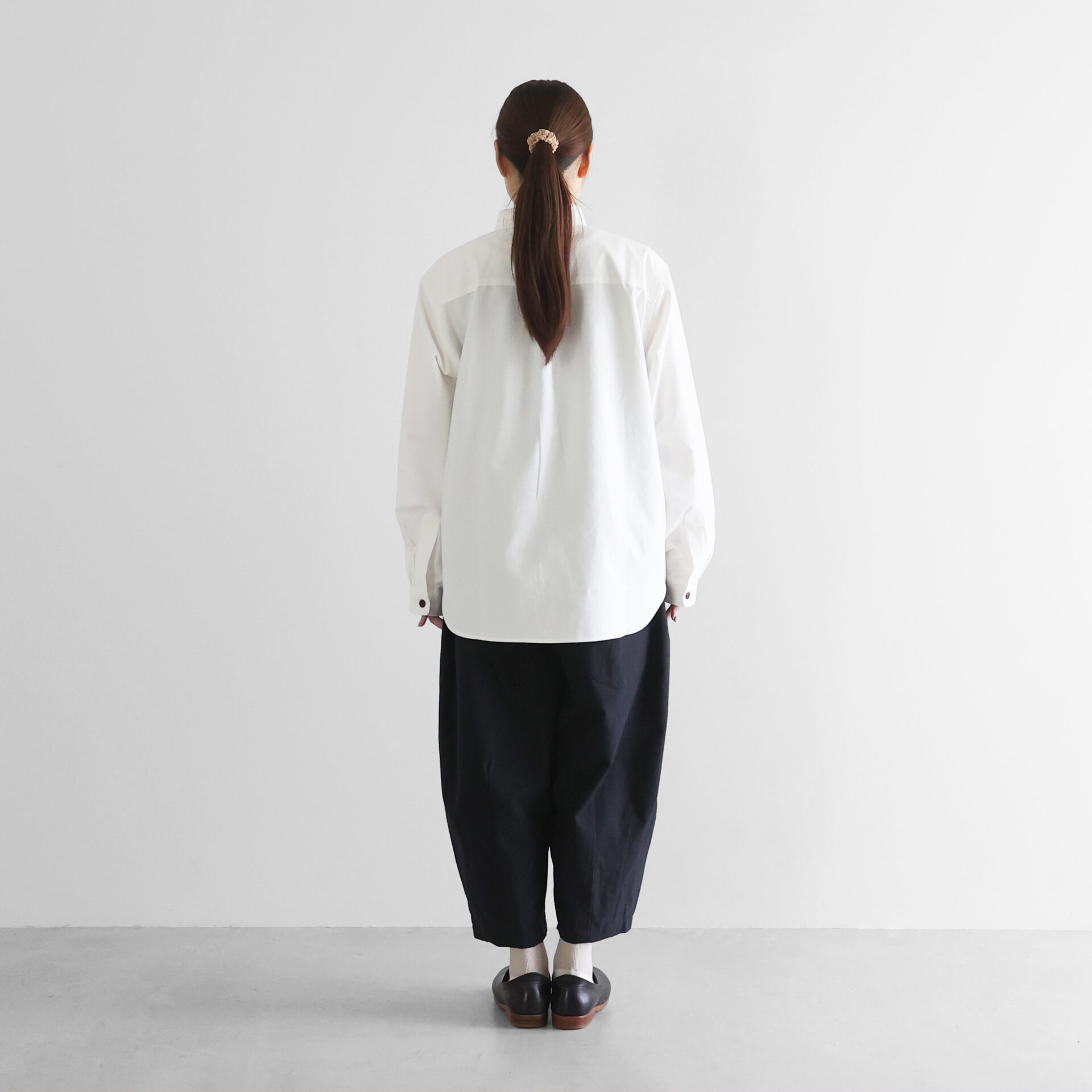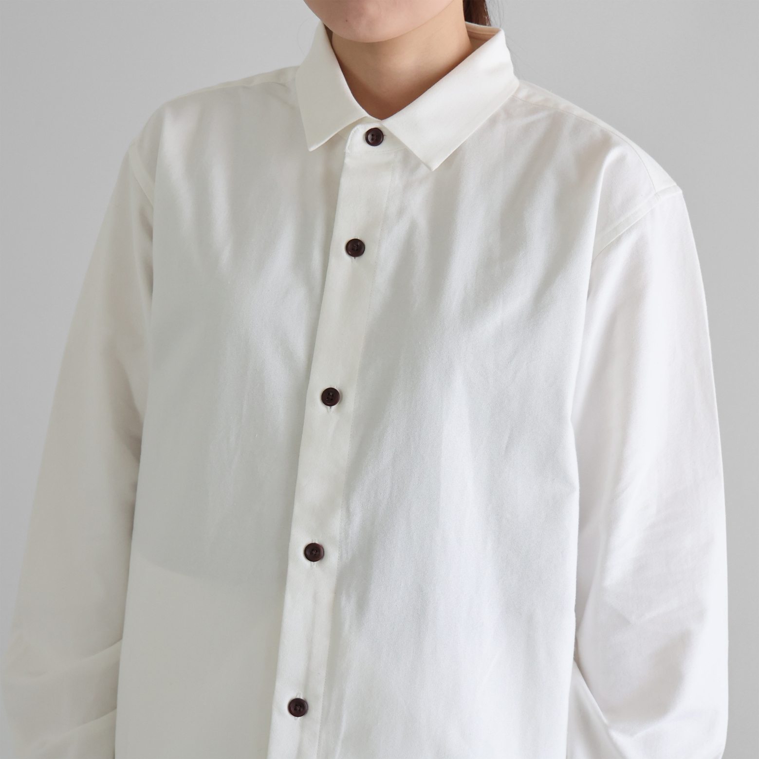 ただ、オックスフォードはハリ感やごわつきが苦手、という方も多いかもしれません。こちらの「スビンオックスフォード」は、とろけるような柔らかさを持ったスビン糸を使い、旧式のシャトル織機でゆっくりと時間をかけて織りあげた生地。従来のオックスフォードの常識を覆すような着心地を味わっていただけると思います。