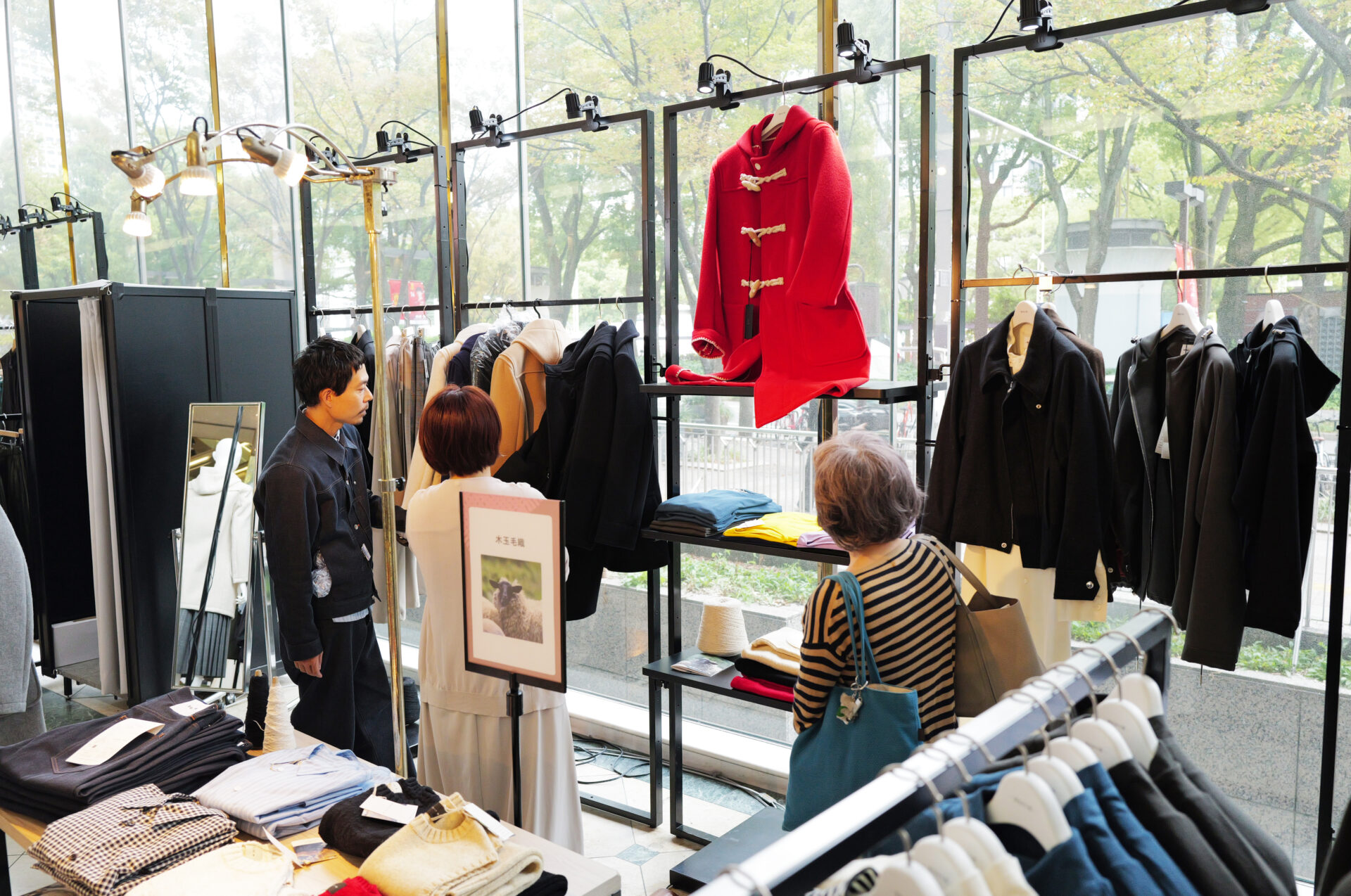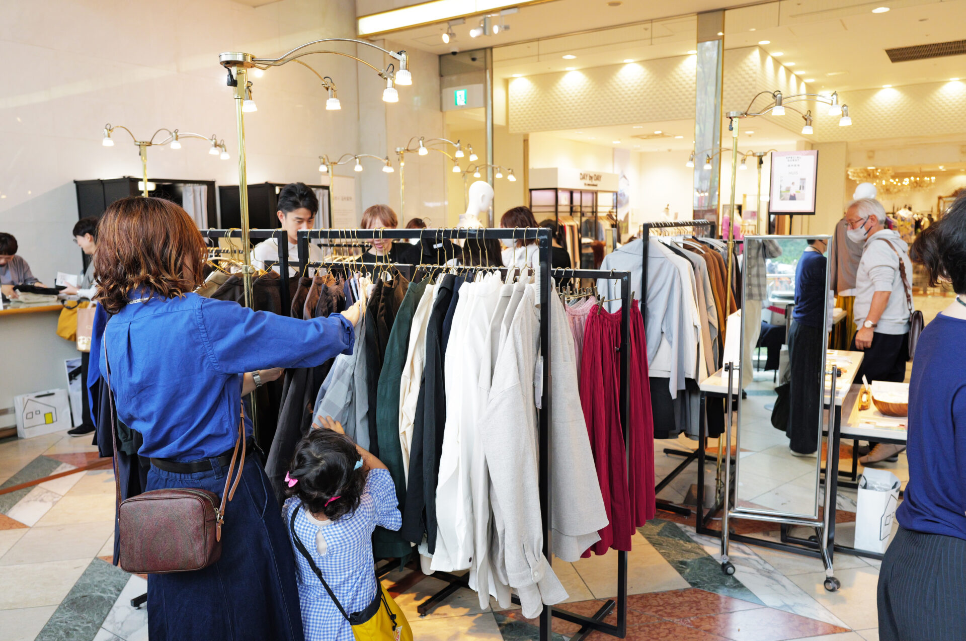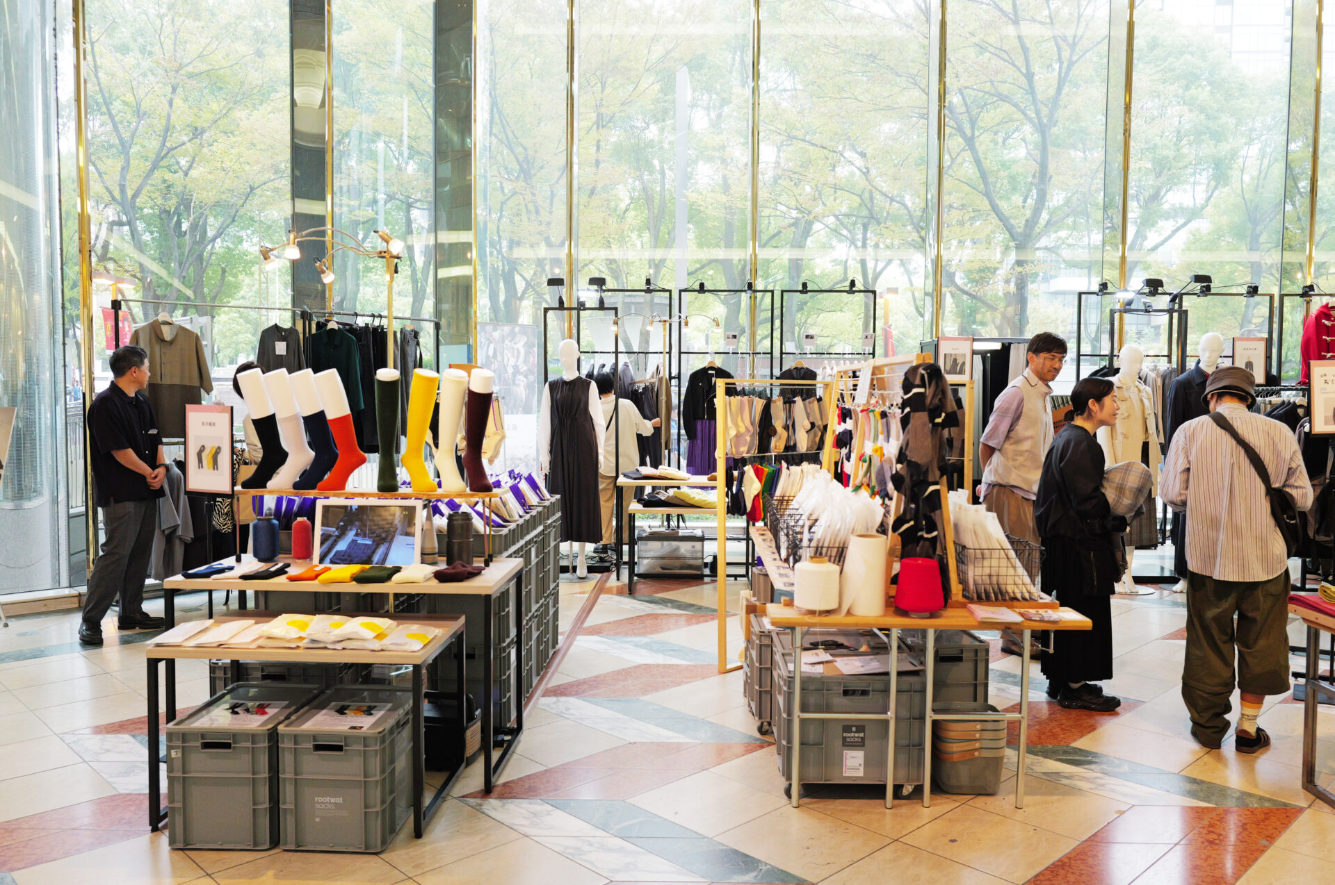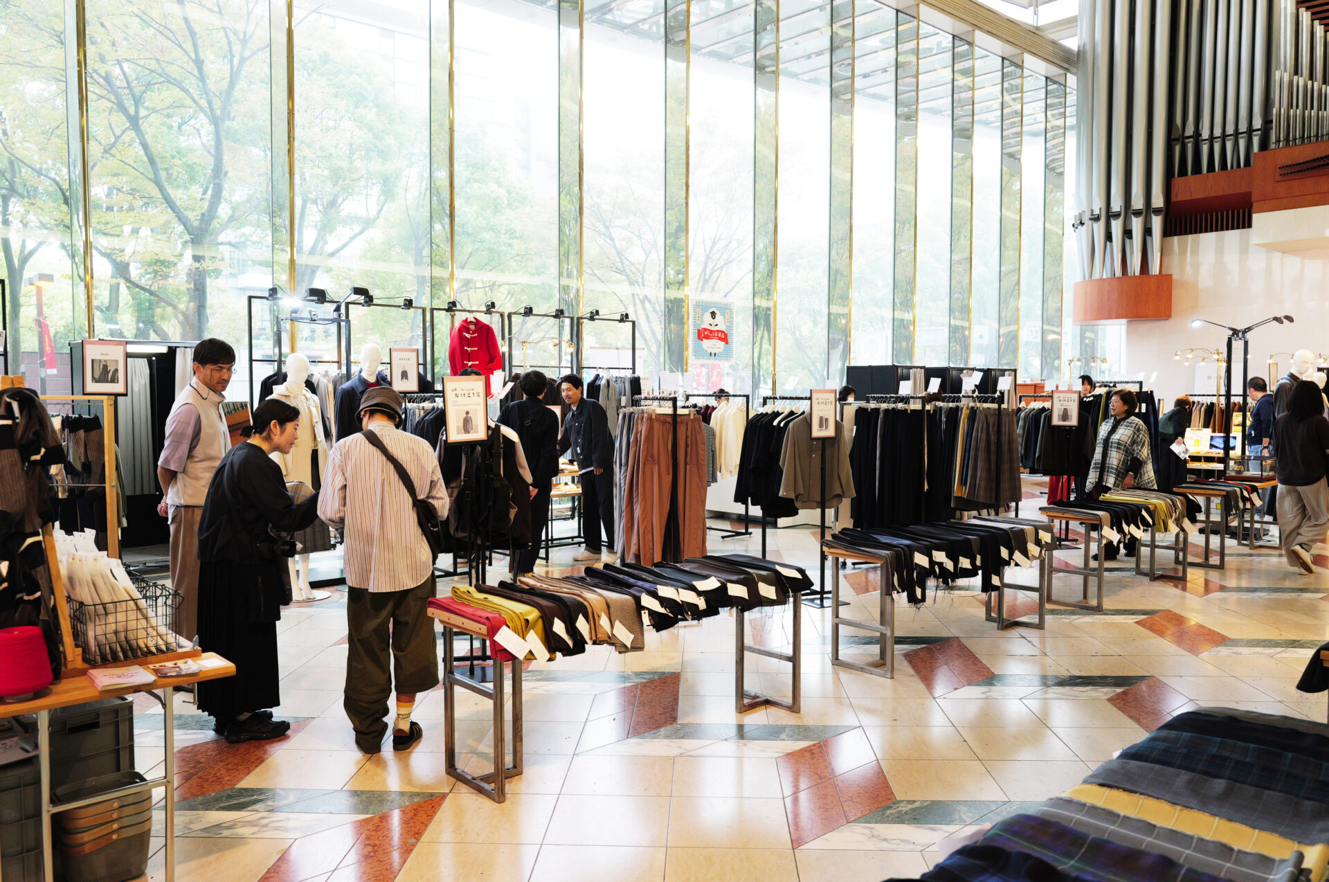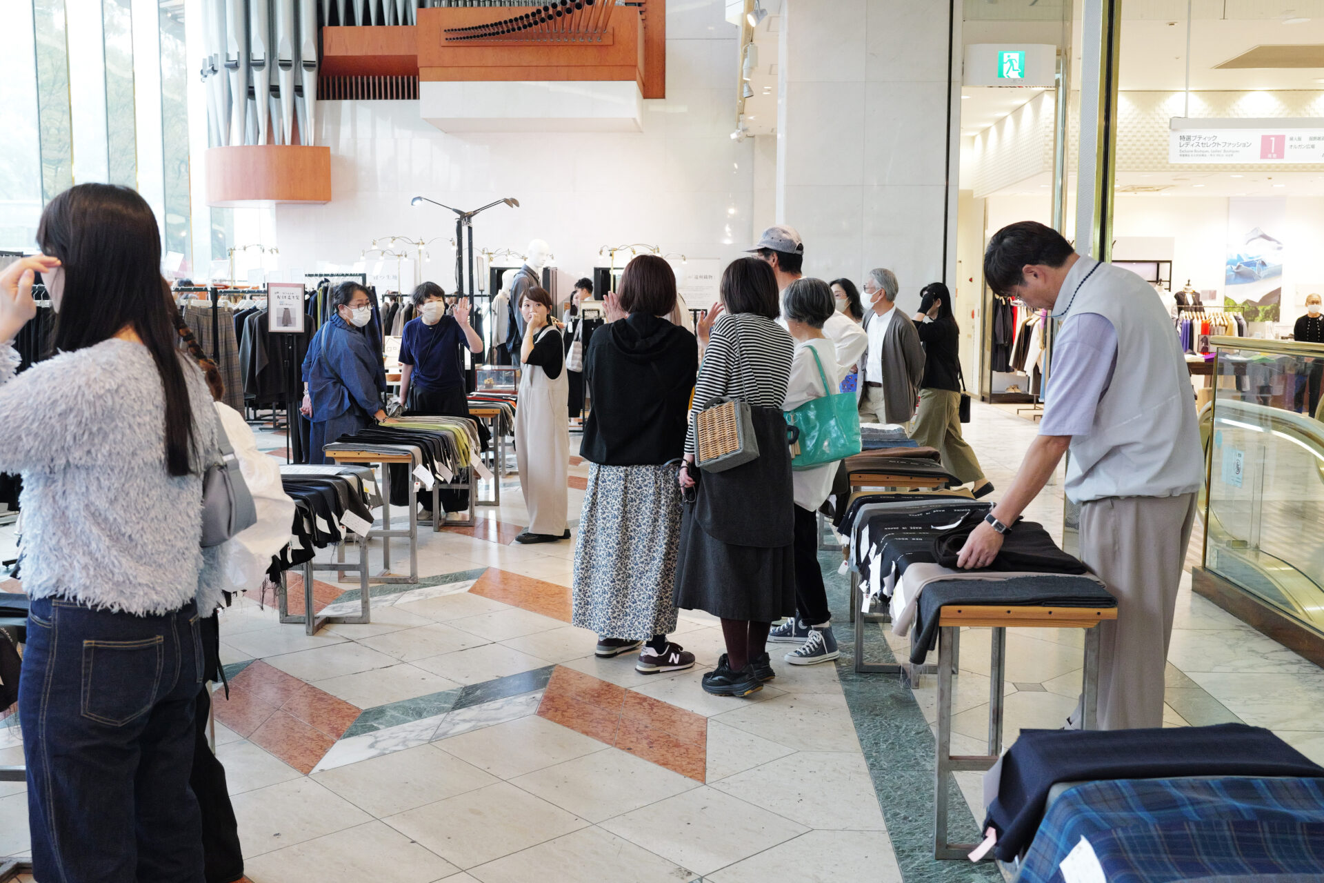 新見本工場さんのブースも常に人気で、生地から選ぶ産地ならではのお洋服選びができます。