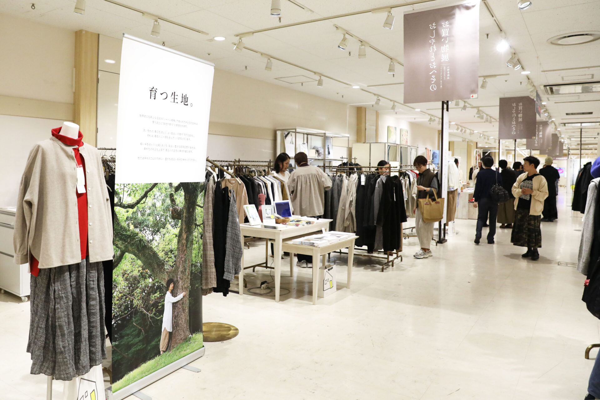 HUISブースでは、毎日の習慣がちょっと変わる遠州織物による着心地のいいお洋服をたっぷりとご覧いただけます。。