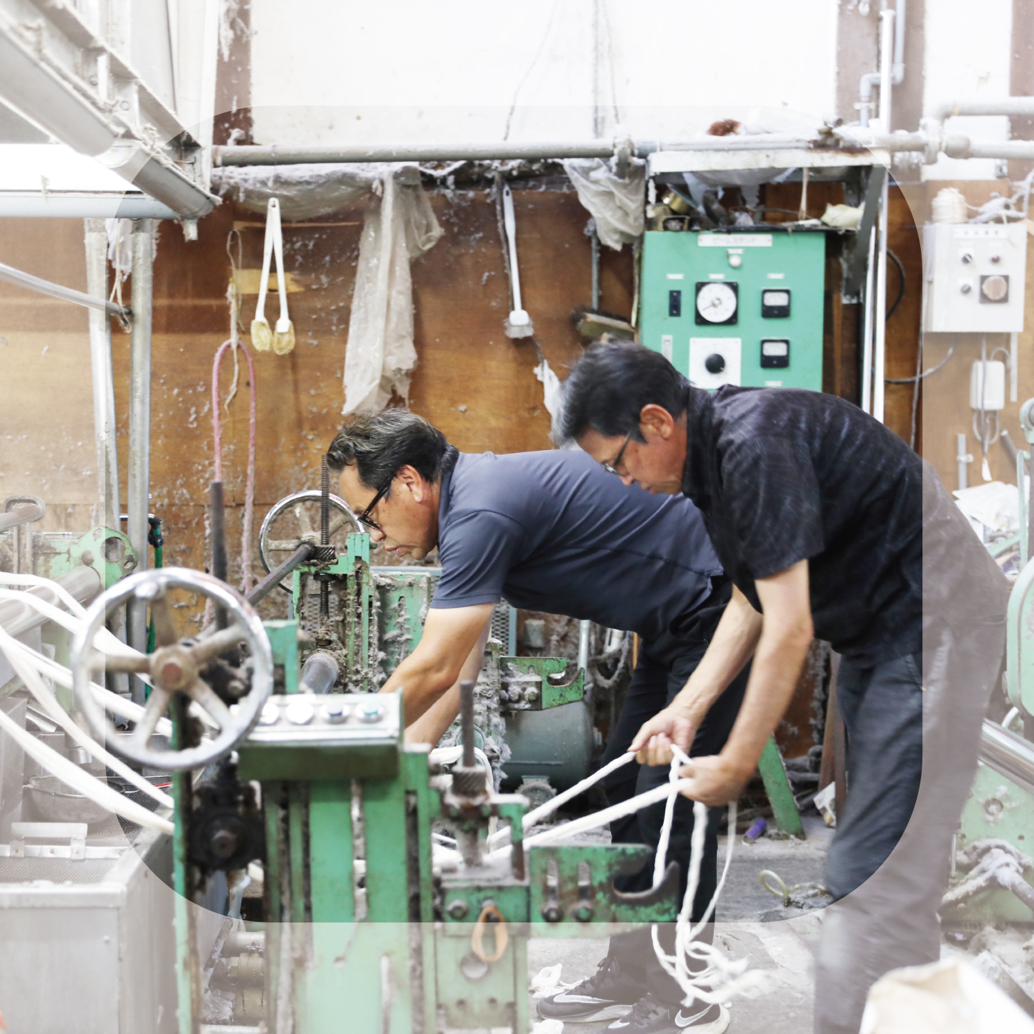 まず衝撃を受けたのは、遠州のサイジング工場が、現時点でたったの3社しかないという事実でした。しかも、そのうちの1社が廃業をする可能性が出てきてしまっているとのこと。話を聞き進めるうちに、これは単純に「3分の1が減る」という数の問題ではないことがわかり、より一層現状の課題を目の当たりにしました。