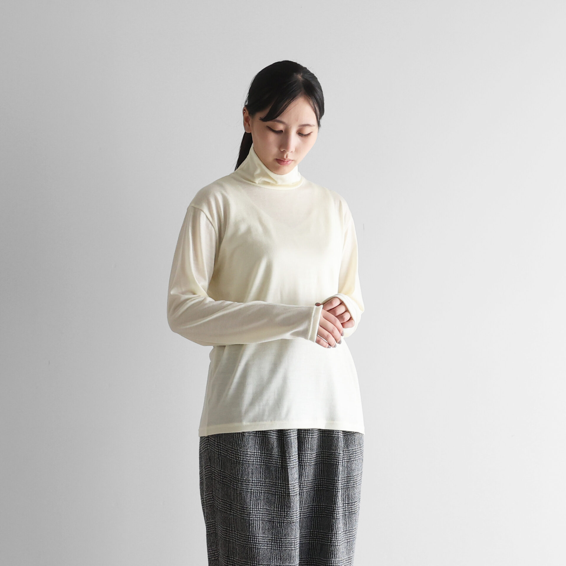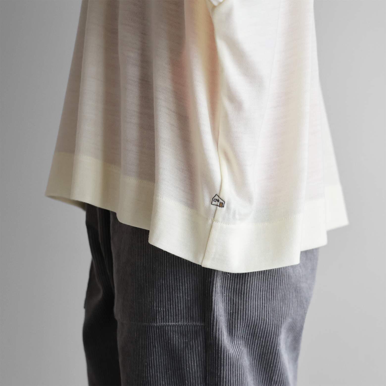 天竺編みしたこちらのウールカットソーは、ウールのデメリットであるチクチクとした感触がまったくなく、素肌にも着られる特別なウール100%のカットソーです。