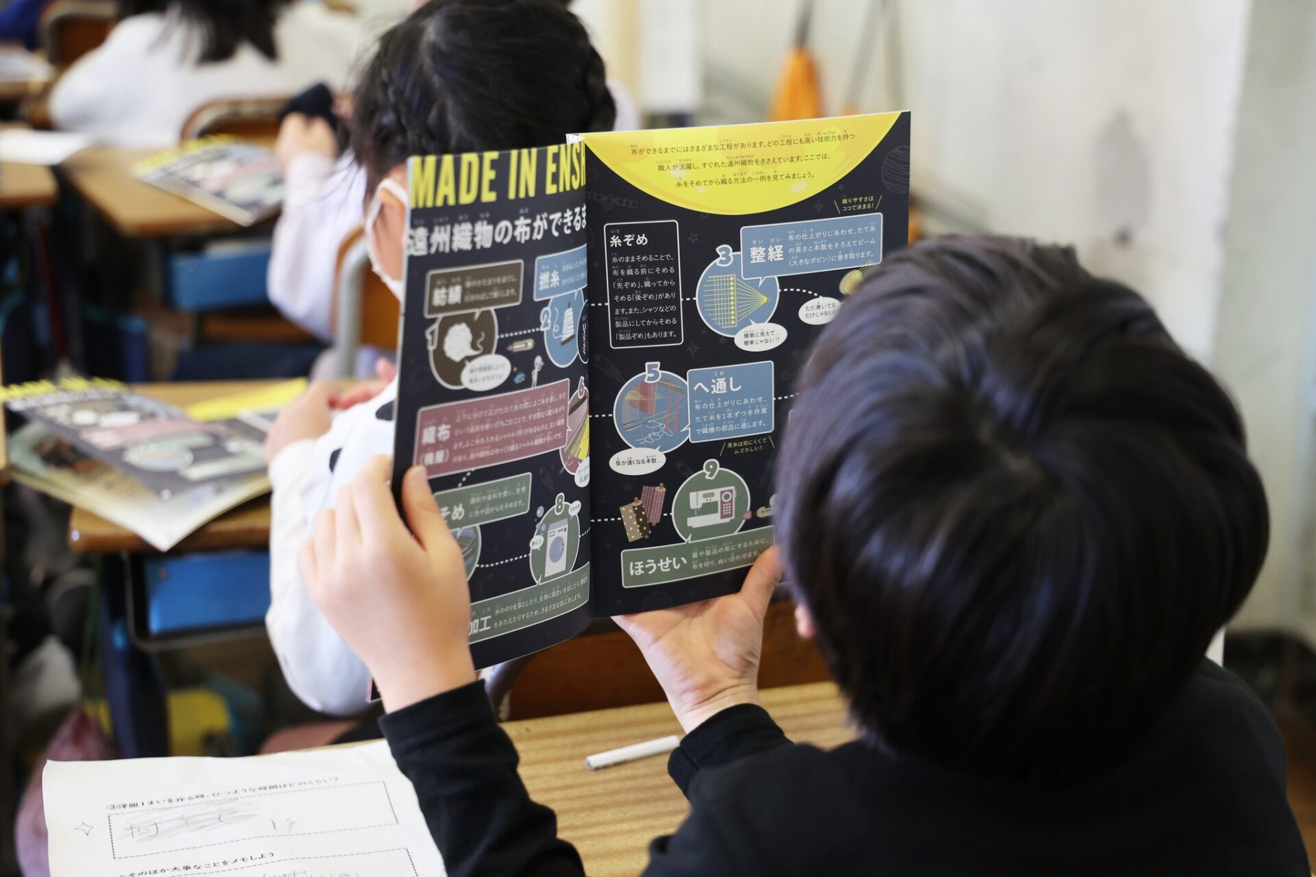 地元の産業や特産について学習している浜松市立城北小学校3年生のみなさんに、遠州織物についての出前授業に行ってきました。