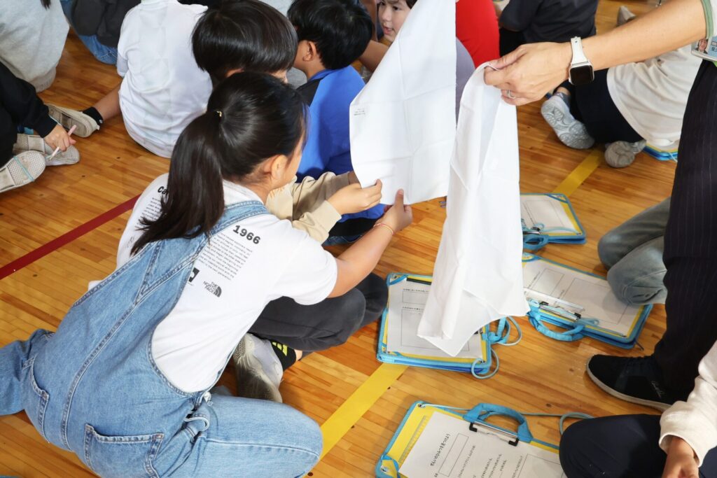 一人一人ハギレを手に取ってみたり布を触り比べてみたり、また綿の繊維を撚って糸をつくってみたりしながら、普段はなかなか気にすることのない身近な洋服の生地について気づきや考えを深めている様子でした。