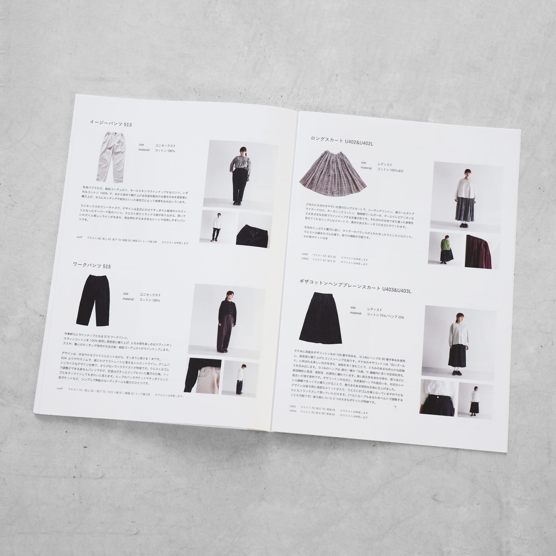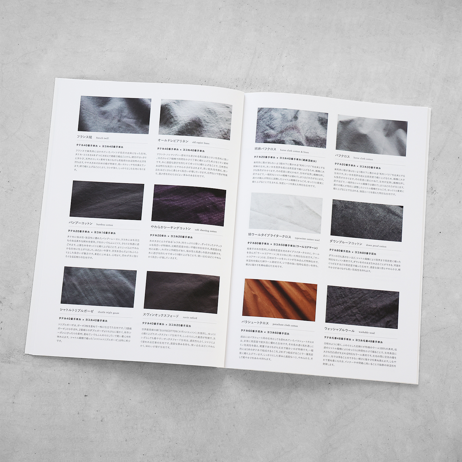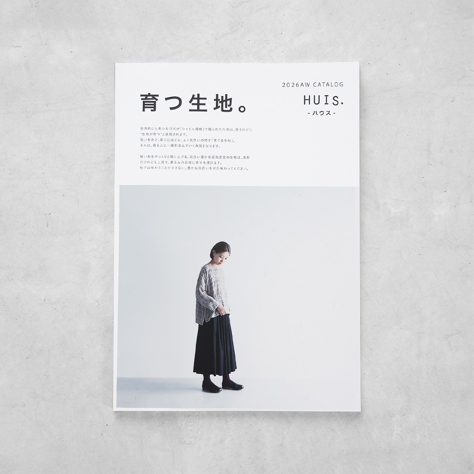 カタログでは、生地や織機、産地のことなどについて詳しく紹介させていただいています。アイテムのほかにも、地域のこと、日本のものづくりのことを少し知っていただけるきっかけになれば幸いです。