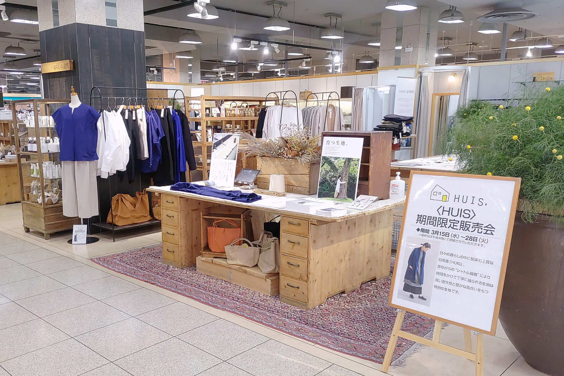 HUISのお洋服を常設でお取扱をいただいているFKD宇都宮店3F「福々暮らしの道具店」さんですが、POPUP期間中は定番商品から秋冬新作アイテムまで豊富なラインナップをご覧いただけます。