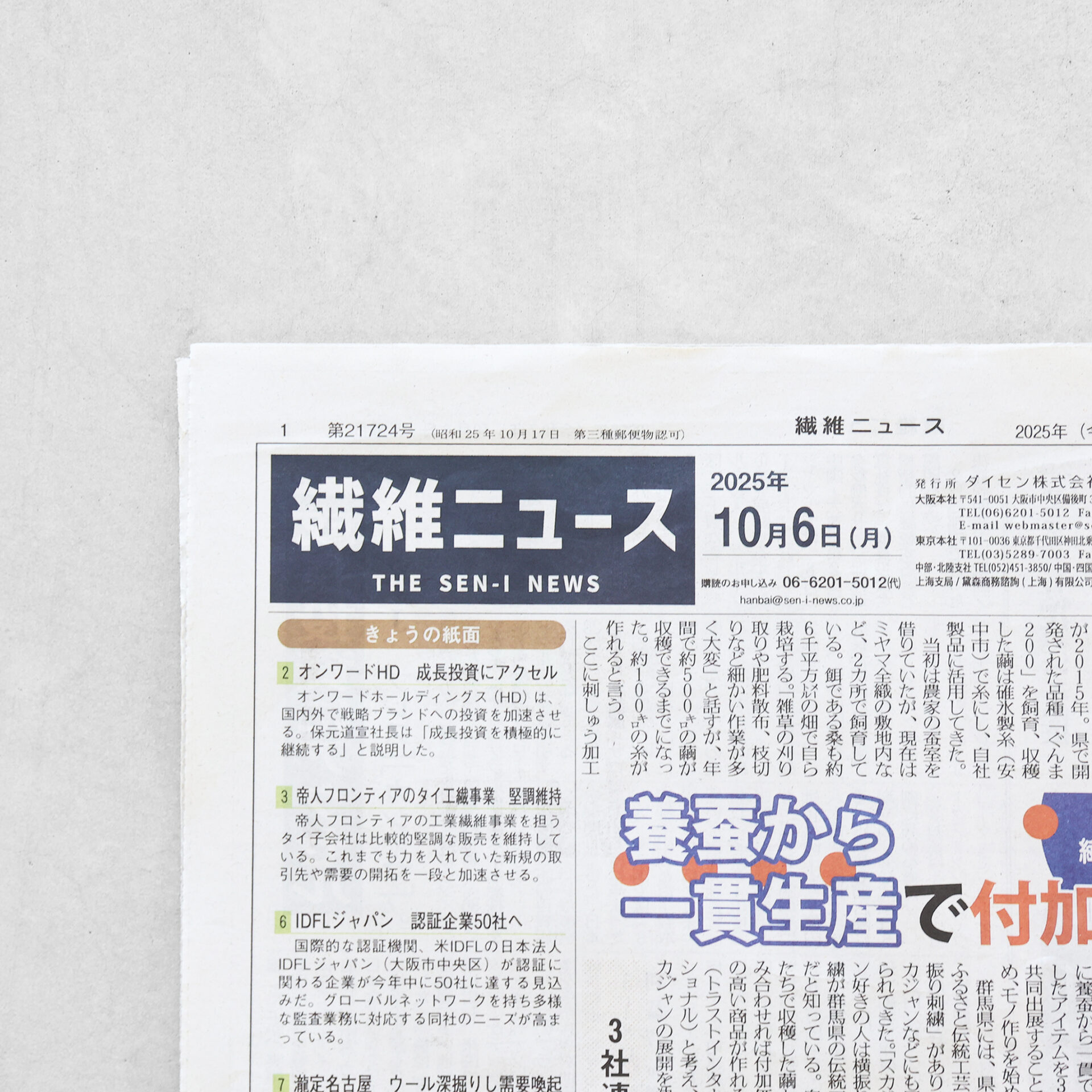 11月24日(月・祝)に開催される柴咲コウさんの全国ツアー「KO SHIBASAKI LIVE TOUR 2025 ACTOR’S THE BEST 〜邂逅〜」浜松公演限定で販売されるコラボハンカチの制作販売について、繊維ニュースさんにご紹介いただきました。