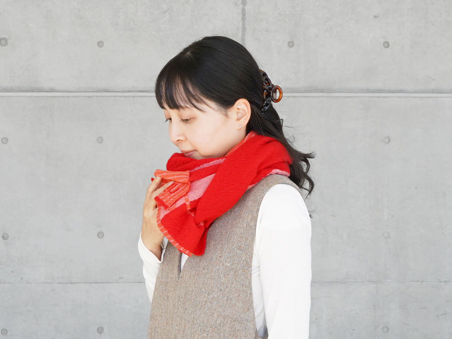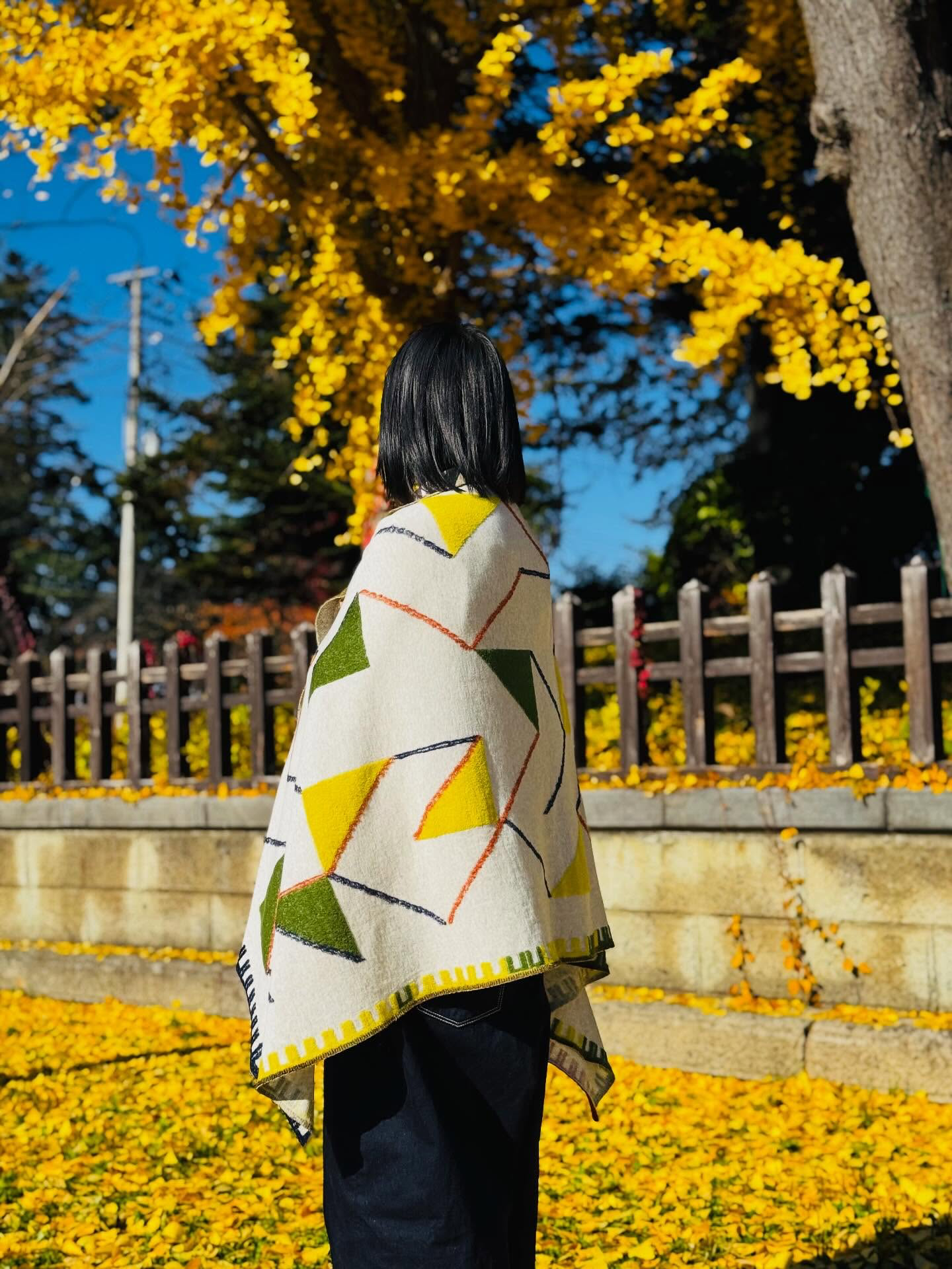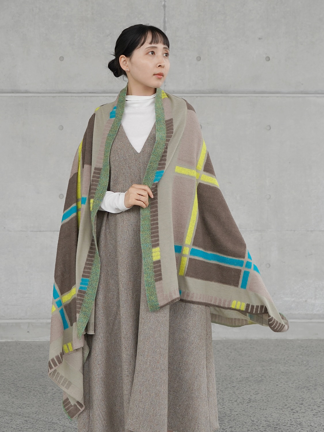 ハサミでフリンジをカットしたり、腕を通す穴を作ってポンチョのようにアレンジしたり、それぞれの楽しみ方ができるアイテムとなっています。