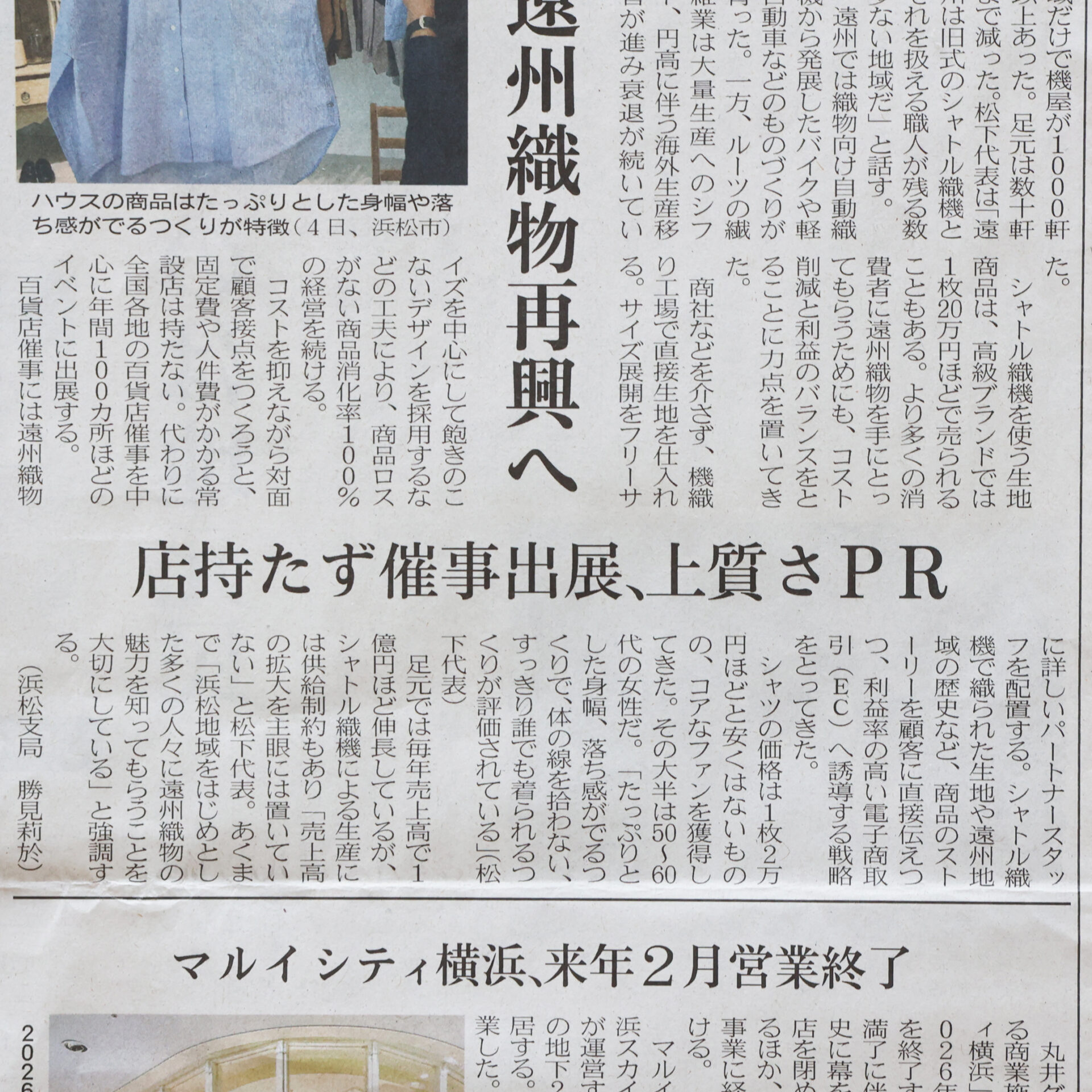 遠州織物の生産効率は決して高くありませんが、それでも、ゆっくりと織り上げられることで生まれる“しなやかな風合い”と“圧倒的な耐久性”が、注目されるきっかけになるよう、これからも産地の魅力を丁寧に届けていきます。