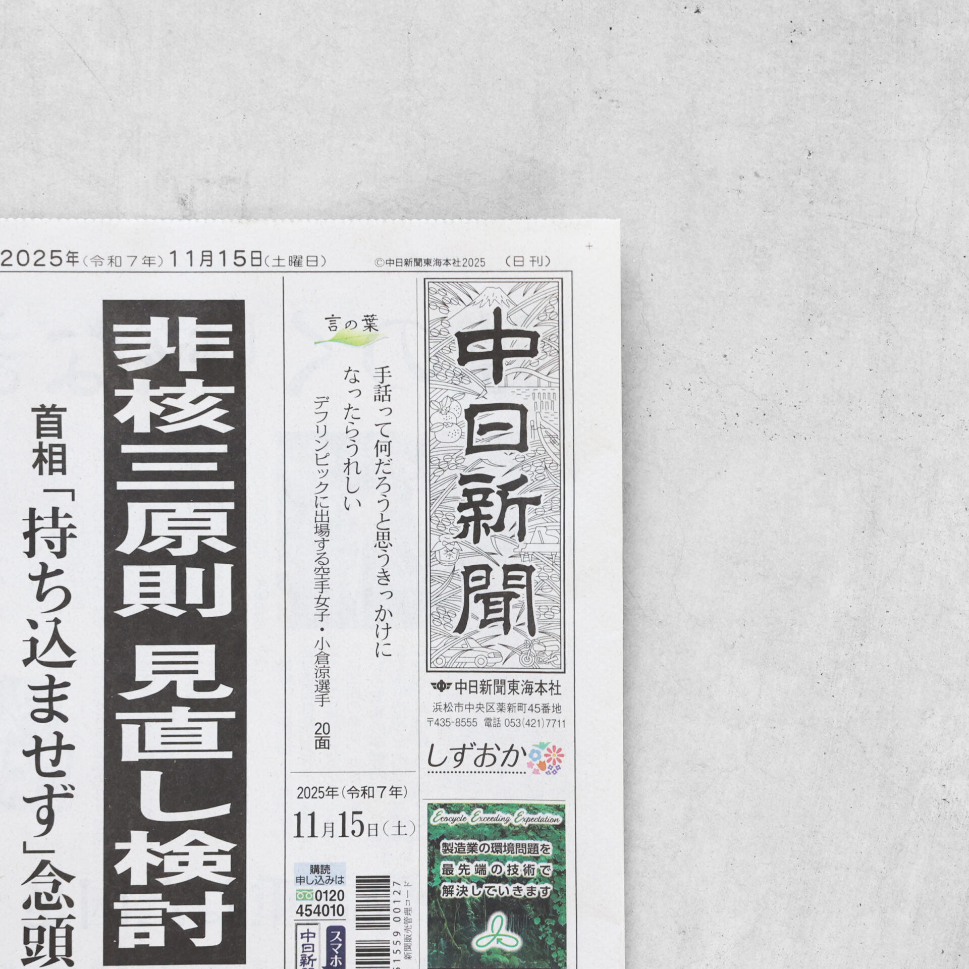 静岡文化芸術大学で行わせていただいた、代表・松下の特別講義の様子を、11/15付の中日新聞に掲載していただきました。