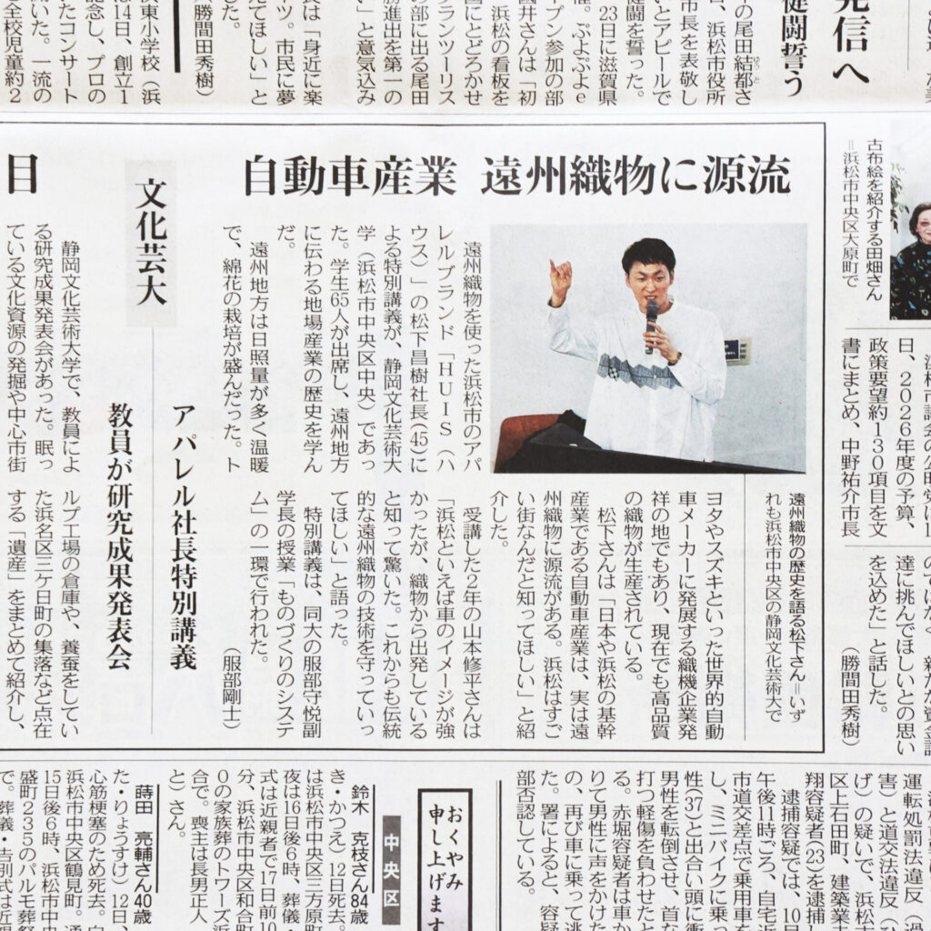 \中日新聞に静岡文化芸術大学での講義の様子を掲載いただきました!/