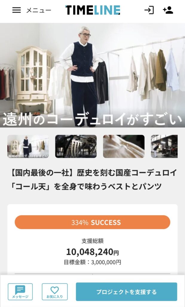 春のシャツ編に続き、秋冬・コール天編として取材いただき、11/12より実施中のクラウドファンディングに、1,000万円を越えるたくさんのご支援をいただきました。