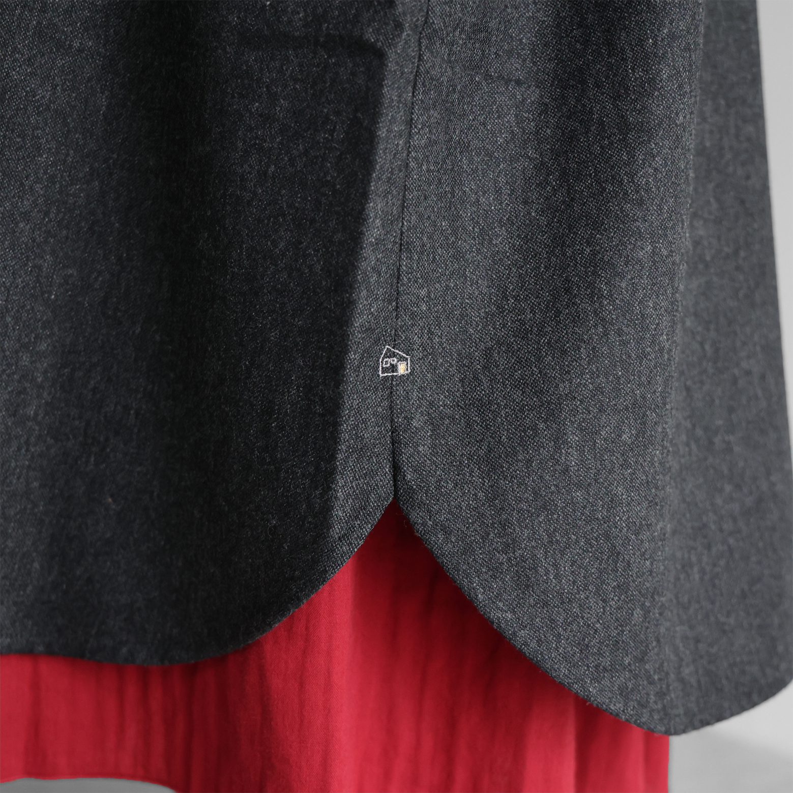 異素材が混在する再生ウールの特性を活かし、あえてムラが出る様に染め、味わいのある色合いも楽しめます。1反ごとに水流で揉み込み、さらに蒸気プレスを施すことで、柔らかさを残したままハリコシのあるクリアな質感に仕上げています。