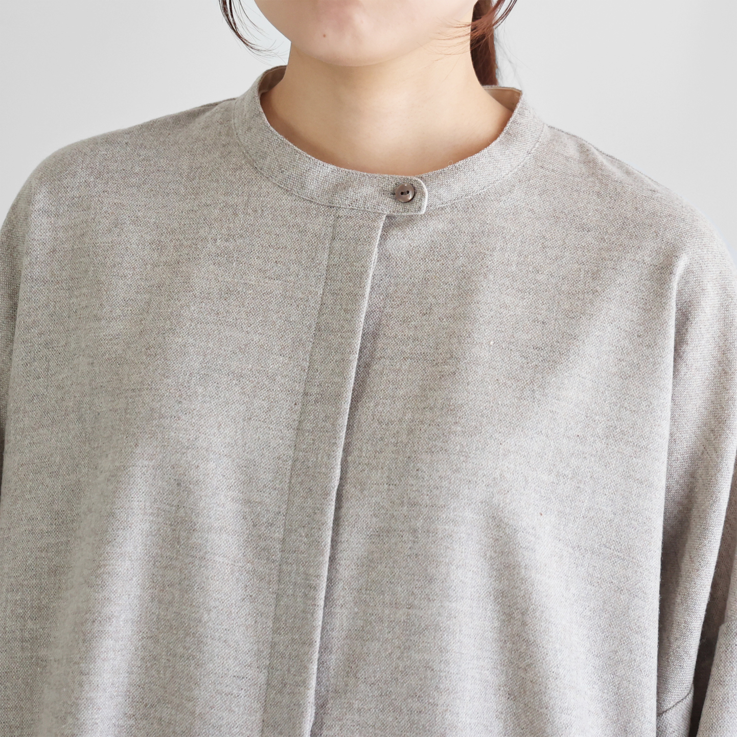 暖かな紡毛糸を、あえて薄く軽く織り上げることで、ウールの暖かさを持ちながら、軽く着心地の良い生地です。秋冬にうれしい暖かさがありながら、薄手でサラッとやわらかな生地感。キレイめな平織生地で、きちんと感も楽しめます。