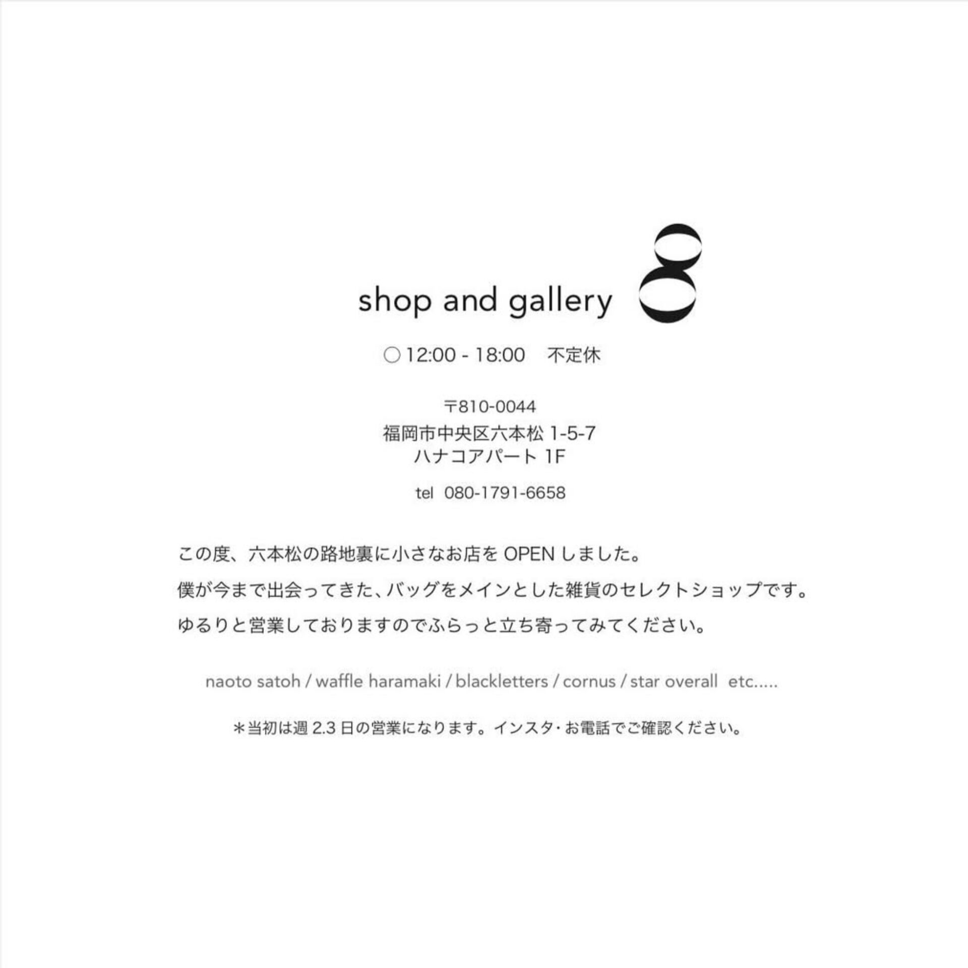 12/19(金)〜21(日)の3日間は、福岡市中央区六本松にある「shop&gallery 8」さんにてPOPUPを開催いたします。