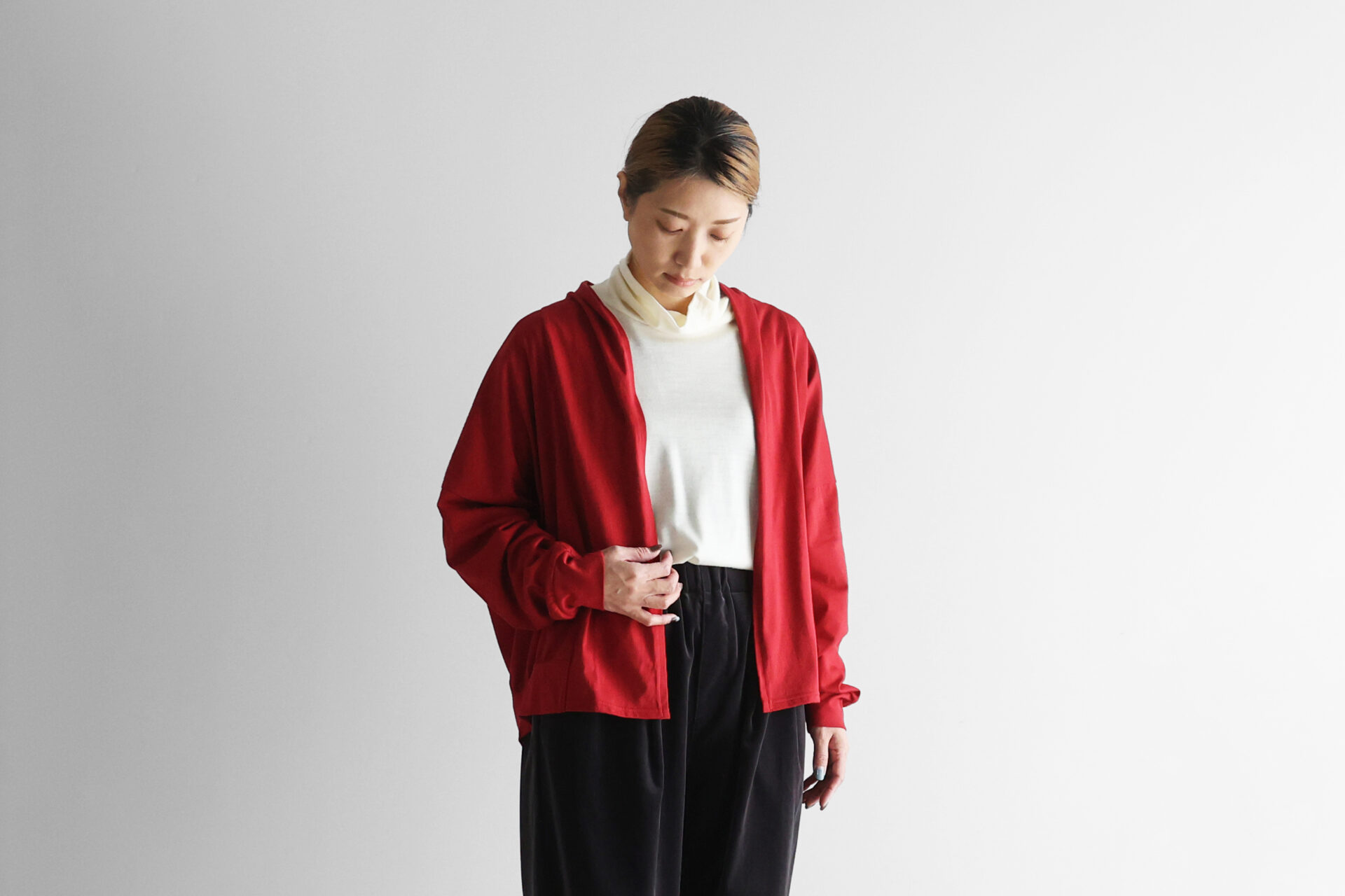 ふだんの日常も、気持ちの良い生地に包まれて、心地よく暮らせる。お洒落をしておでかけする日と、自宅でまったりと過ごす日を、シームレスにつないでくれる、そんな衣服です。