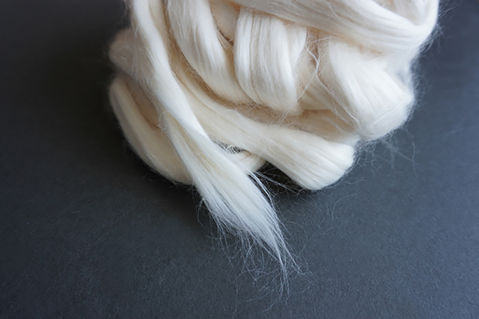 2.9マイクロのスヴィン糸は、糸自体がシルクのようなツヤとカシミアのような柔らかさを持つとともに、糸に撚り(複数の繊維をねじり合わせること)をかけなくても強度をもつため、甘撚りの糸を使って丈夫な生地を生み出すことができます。