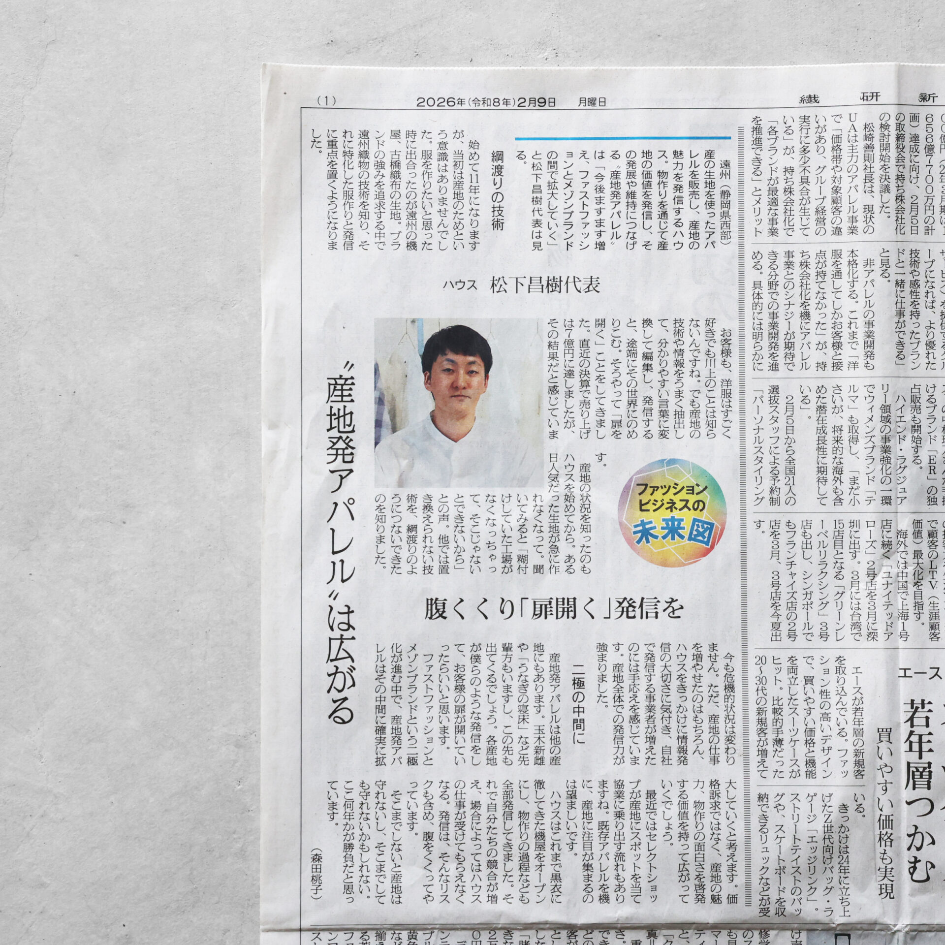 ファストファッションとメゾンブランドという二極化が進む中で、産地発アパレルはその中間に拡大していくと考えています。