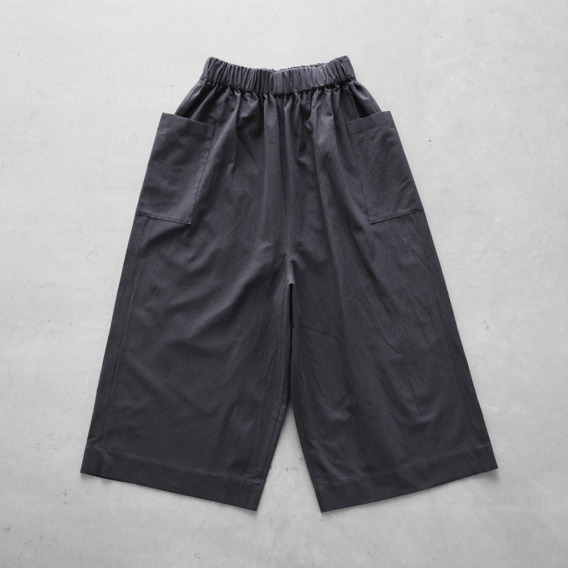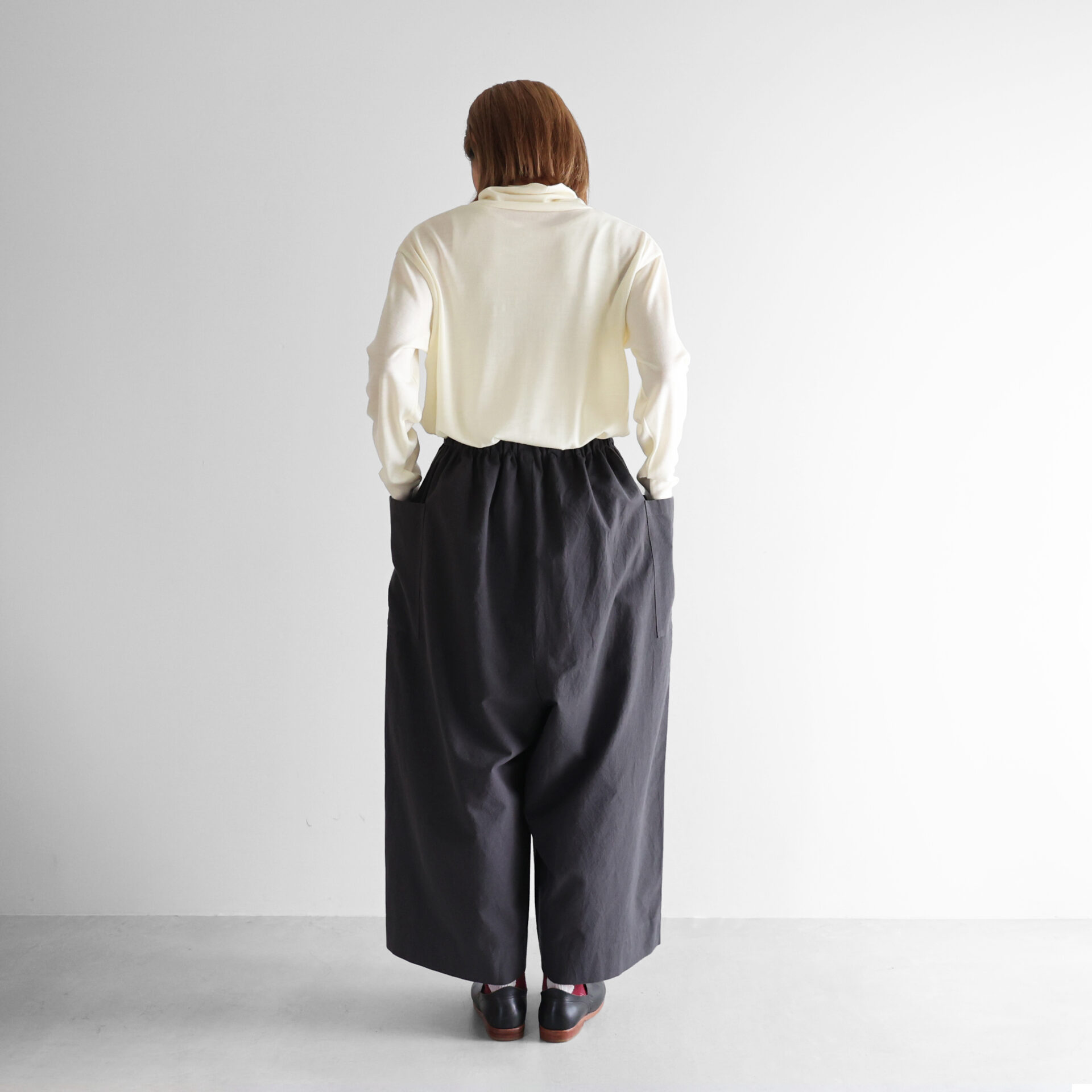 たっぷりと生地を取った、ゆとりのあるシルエットのパンツ。